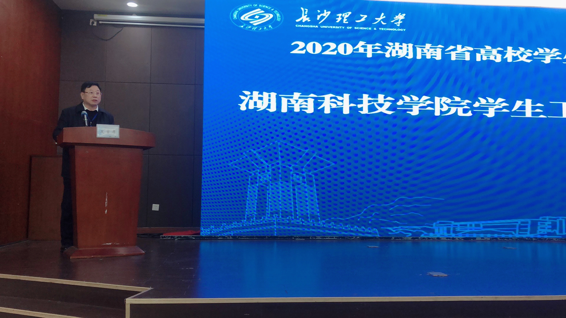 本网讯 12月14日上午,2020年湖南省高校学生工作部部长培训研修班在长沙理工大学开班,湖南省教育厅二级巡视员柴世钦、省委教育工委宣传部部长刘书华、长沙理工大学副校长谈传生出席开班仪式,来自全省109所高校的学工部长参加培训。