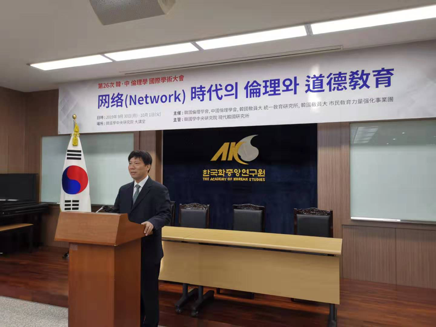 本网讯 近日由韩国伦理学会、中国伦理学会共同主办的第26次韩中伦理学国际学术大会在韩国举行,本次大会的主题是“网络时代的伦理和道德教育”,来自中国和韩国的108名伦理学研究者和道德教育工作者参加会议。世界杯官网潘剑锋教授应韩国伦理学会的邀请参加了此次会议,并作了题为“网络时代更需要加强孝道教育”的学术报告。他从传统孝道中的育人思想、传统孝道育人思想的育人作用、当今网络条件下加强孝道教育刻不容缓三方面阐明了为什么网络社会更需要加强传统孝道教育,受到了中韩学者的高度评价。
