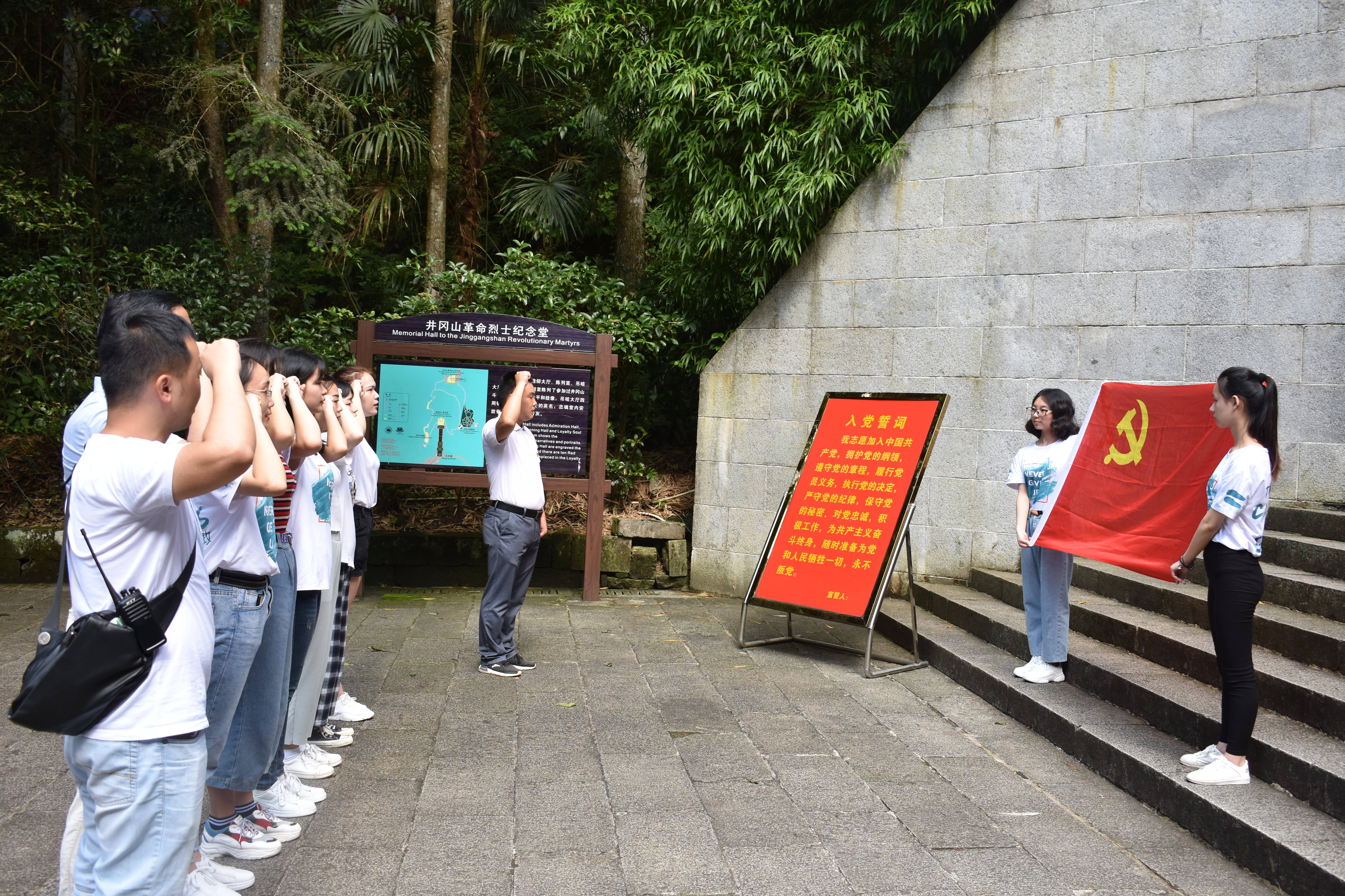 该院师生先后参观了井冈山革命烈士陵园、历史博物馆、大井朱毛旧居、小井红军医院、黄洋界保卫战纪念馆等革命历史遗址。在井冈山革命烈士陵园里,全体师生向烈士纪念碑敬献花篮,党员同志在纪念碑前重温入党誓词。在小井红军烈士墓前,全体师生重温了革命历史,瞻仰革命故地,缅怀革命英烈的丰功伟绩,进行了一场“信仰的力量”现场主题教学活动。