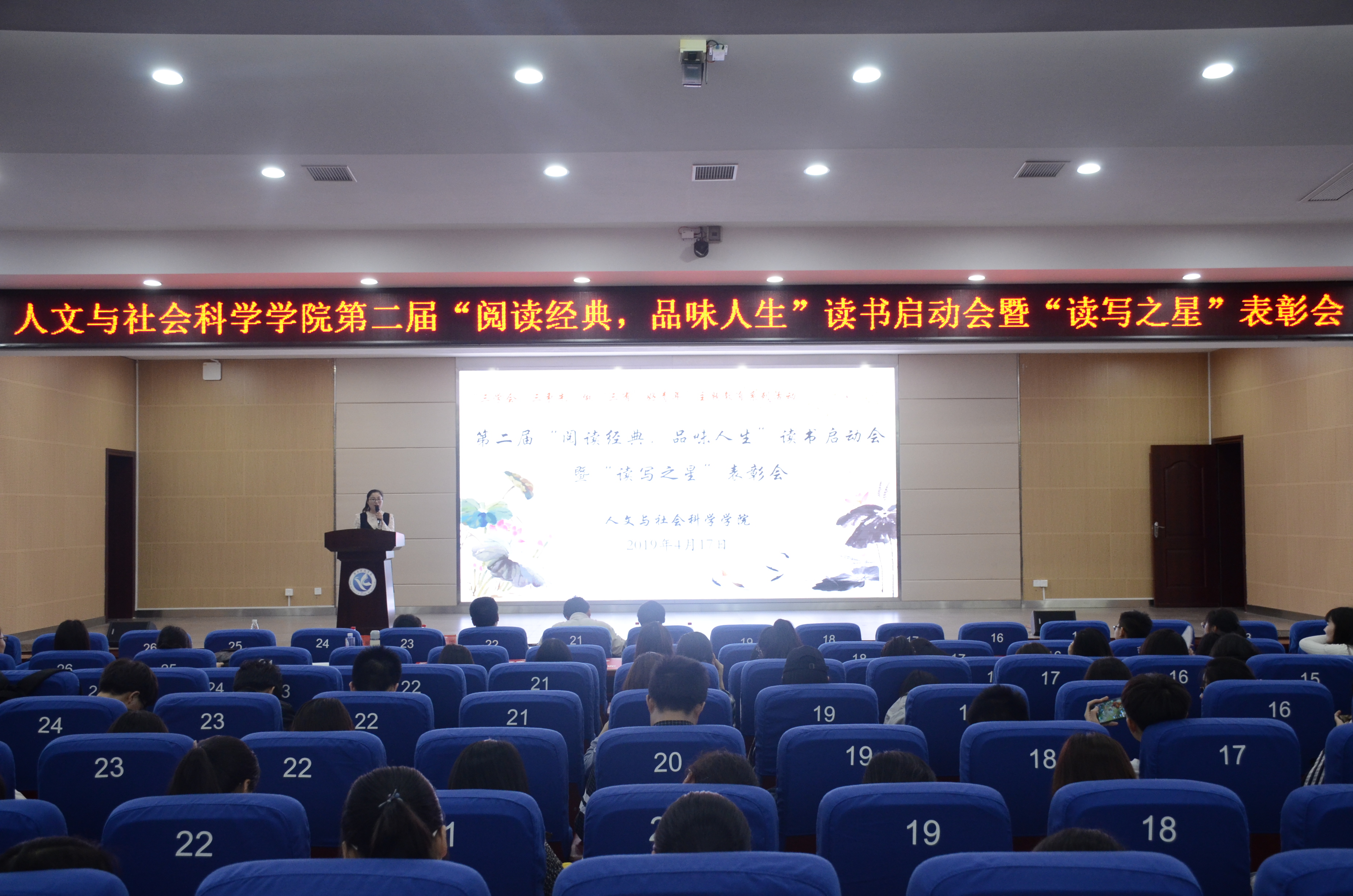 本网讯 4月17日晚,人文与社会科学学院第二届“阅读经典,品味人生”读书启动会暨“读写之星”表彰会在潇湘大讲堂举行。该院党总支书记谷显明参加表彰会。