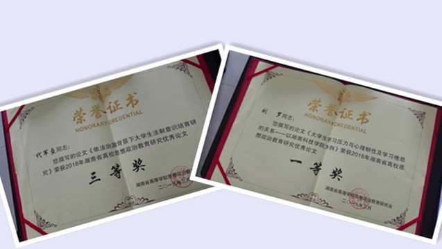会议表彰了2018年湖南省高等学校思想政治教育优秀论文、案例、专著以及湖南省高校思想政治教育研究会先进单位、先进个人。其中,世界杯官网教师刘罗和代军垒分获优秀论文一等奖和三等奖。
