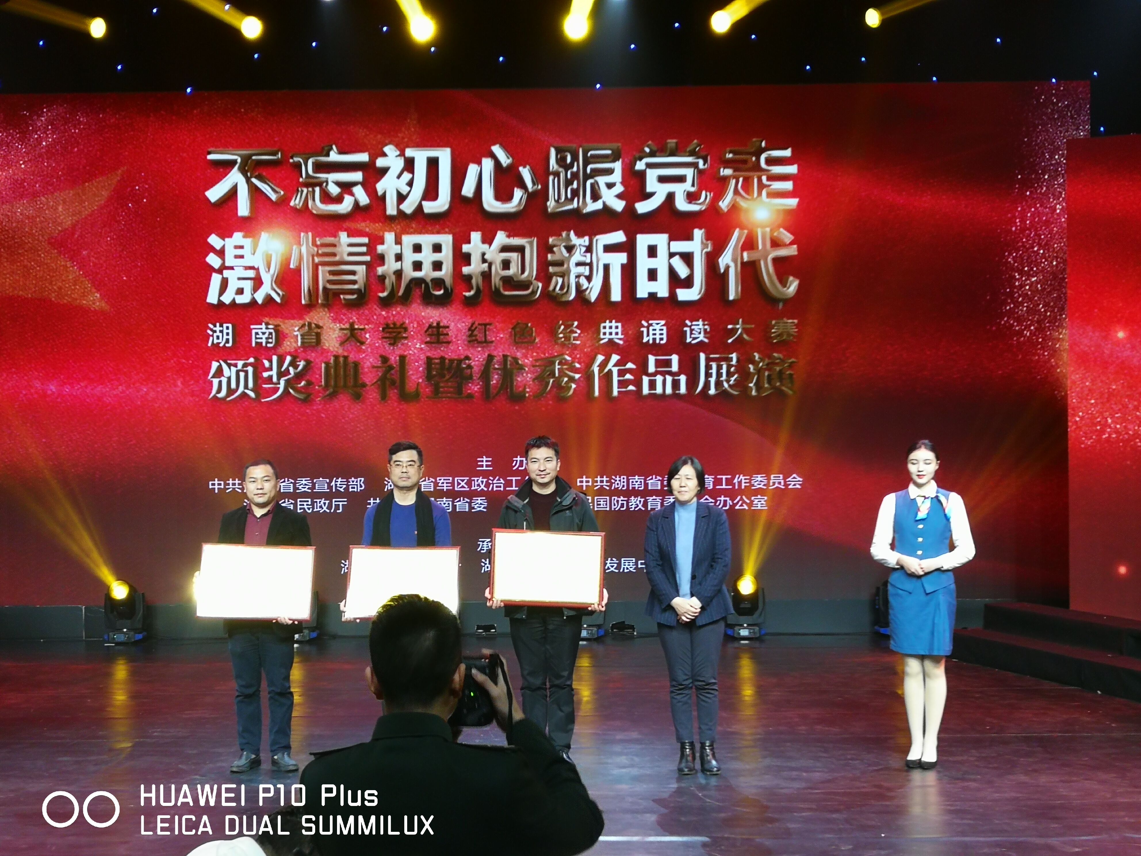 本网讯 由中共湖南省委宣传部、湖南省军区政治工作局、中共湖南省教育工作委员会、湖南省民政厅、共青团湖南省委、湖南省全民国防教育委员会办公室举办的“不忘初心跟党走,激情拥抱新时代”湖南省大学生红色经典诵读大赛颁奖典礼于12月21日在湖南教育电视台举行,世界杯官网分别获得了本次大赛的三个类别的奖项,即:“优秀风采奖”、“网络人气奖”以及“优秀组织奖”。