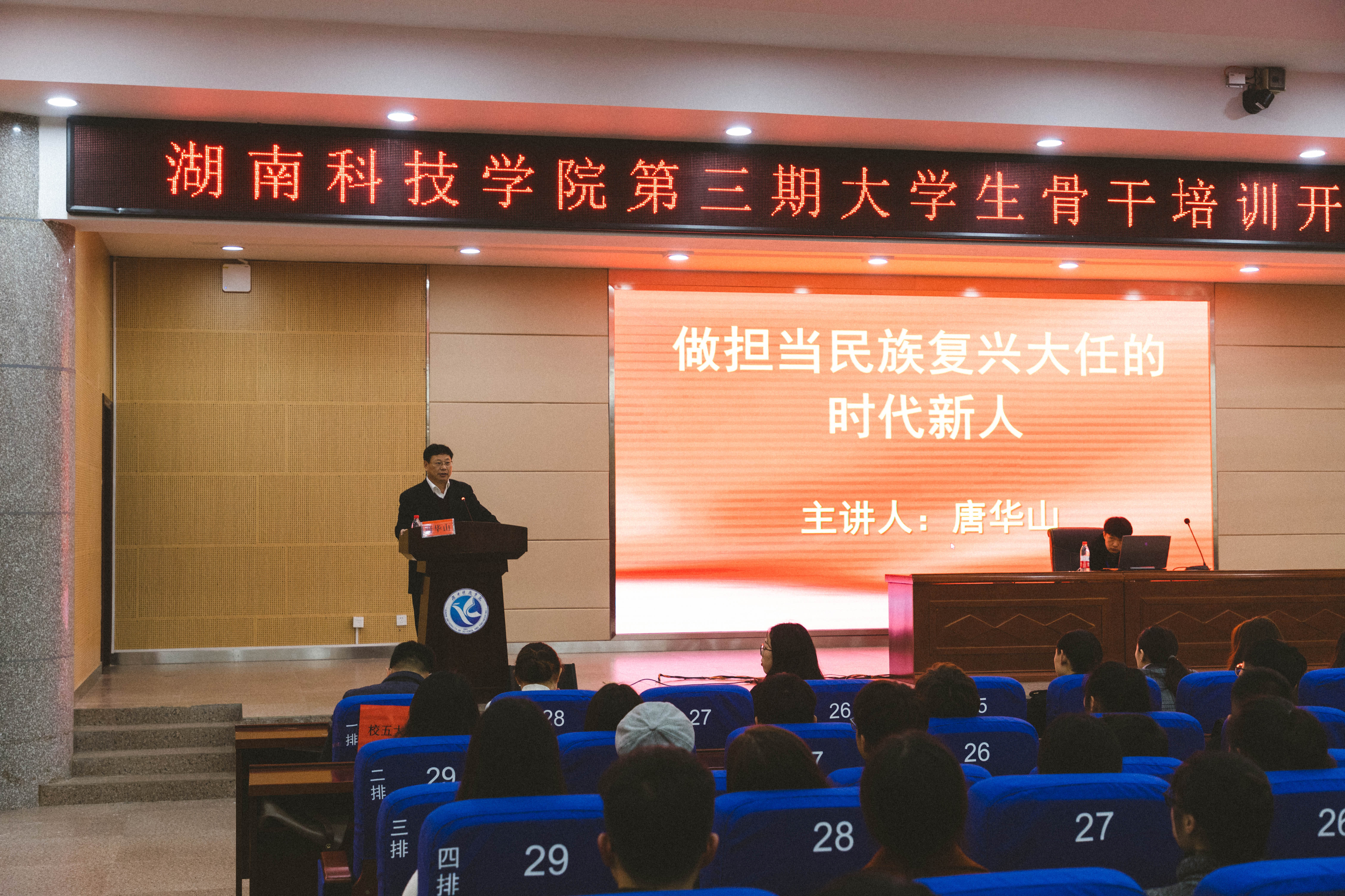 本网讯 10月16日晚,世界杯官网第三期大学生骨干培训在潇湘大讲堂举行,邀请学工部长唐华山担任主讲嘉宾,700余名学生骨干参加培训。