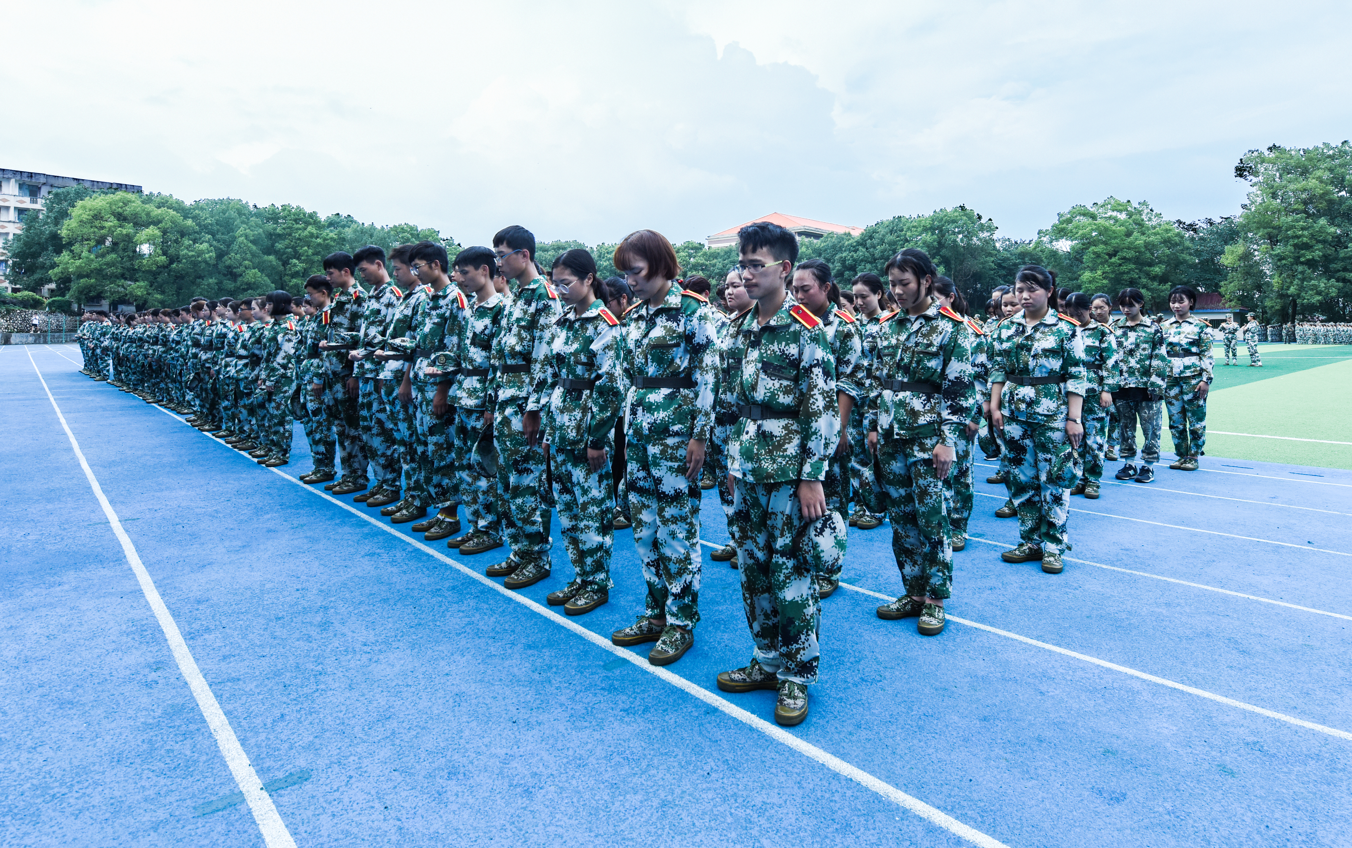 怀着对先烈的敬意,美术与艺术设计学院2018级新生行脱帽礼,默哀三分钟,以缅怀先烈。