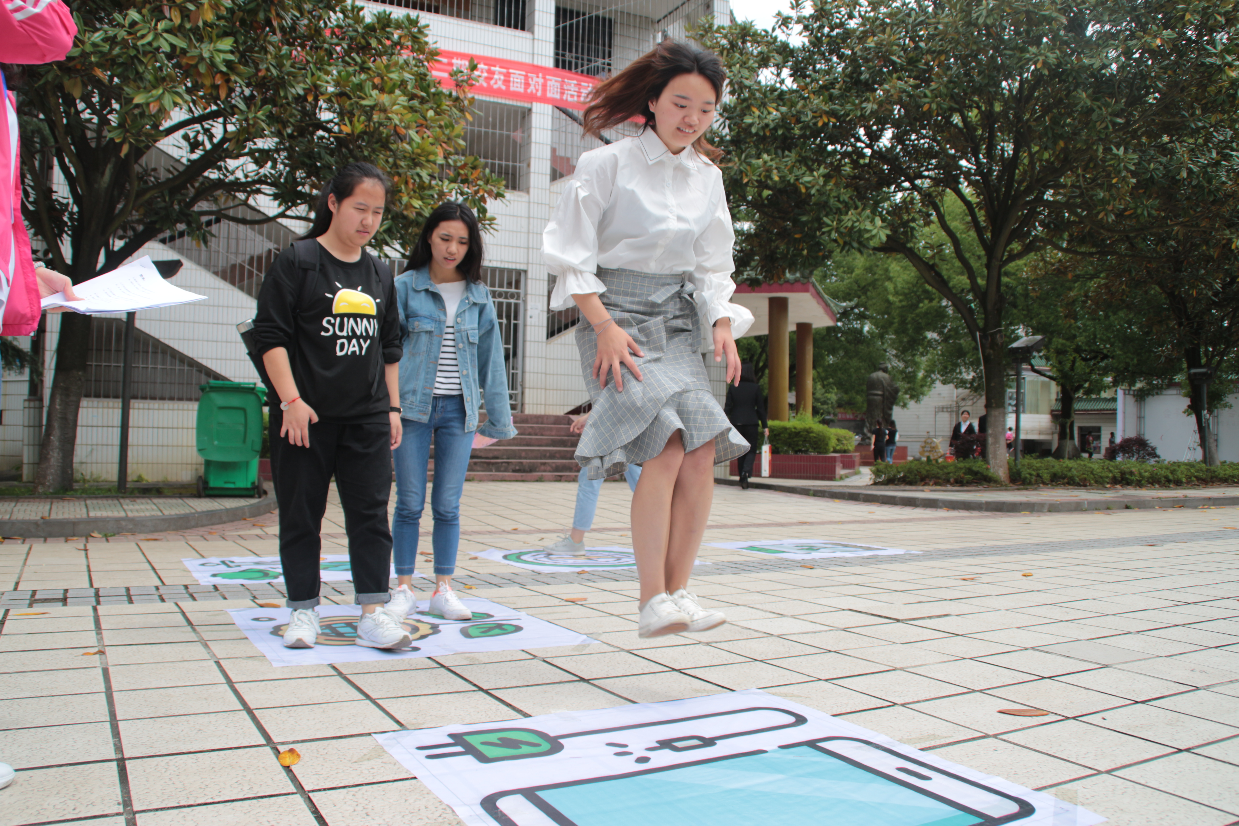 活动围绕世界地球日主题,采用现场互动答题制,题目内容涉及地球环境、资源节约等相关知识。游戏过程中同学们需要回答相关的环保小问题,同学们在参与“跳一跳”活动的同时也增长了环保知识,传递节约资源保护环境的“绿色理念”。
