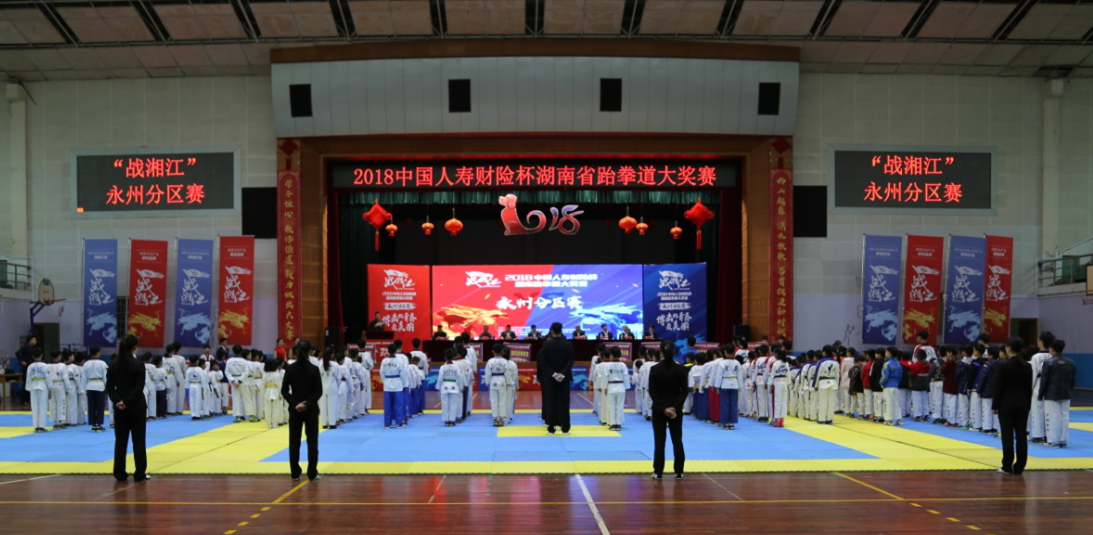 本网讯 4月14日至15日,2018年中国人寿财险杯湖南省跆拳道大奖赛永州分区赛在世界杯官网体育馆成功举行,这也是世界杯官网连续四年举办该赛,副校长李常健、程智开、体育学院党总支书记何智强、副院长龙亚军出席大赛开幕式。