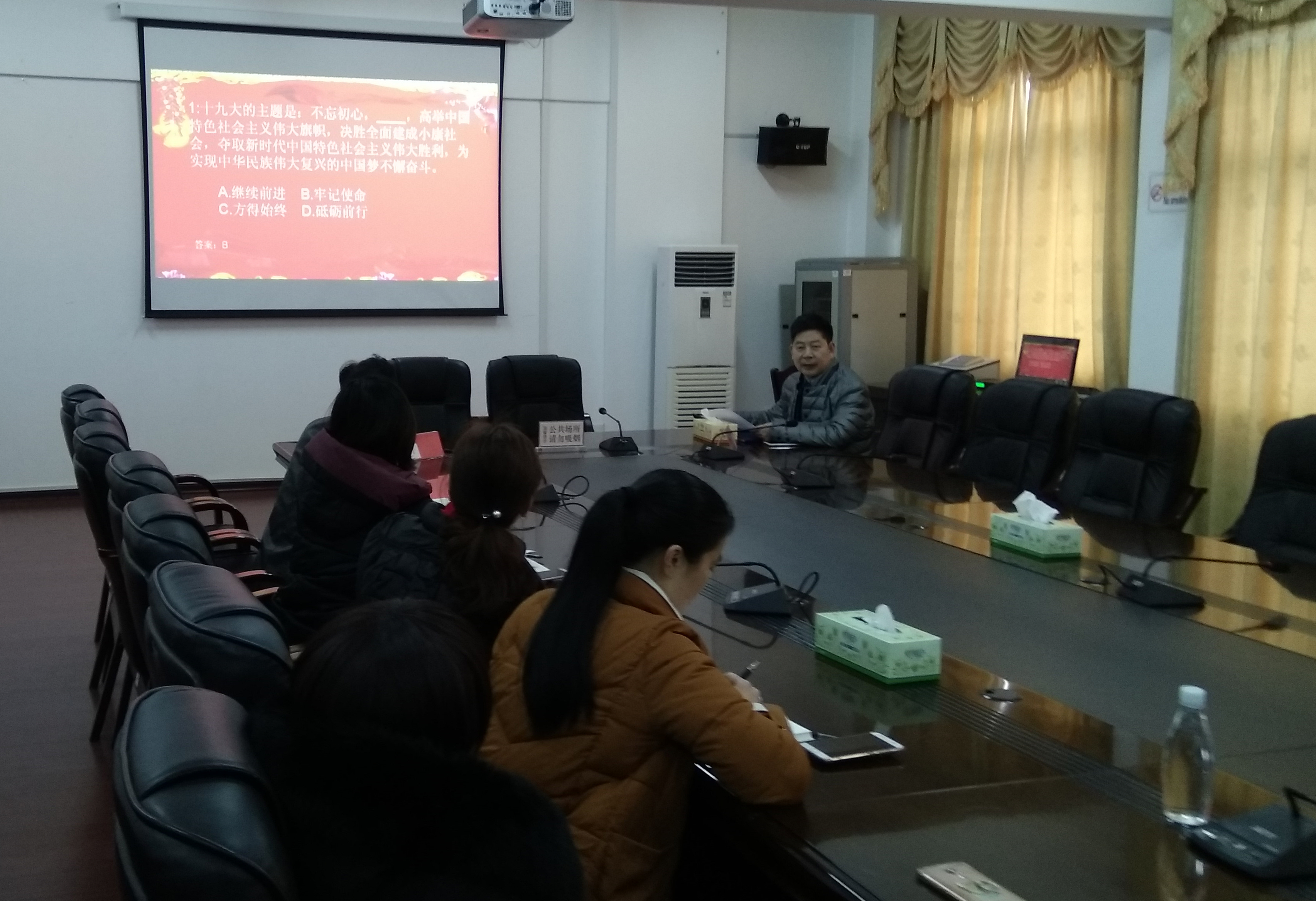 3月7日下午,党政办党支部举行“迎春杯”党员知识竞赛活动,学习党的十九大精神,庆祝“两会”胜利召开。党政办全体工作人员参加了活动。