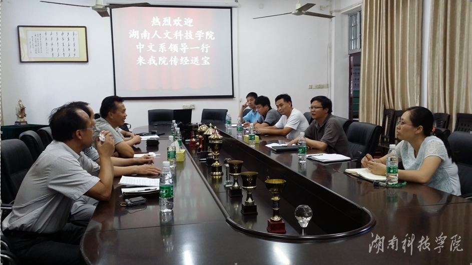 湖南人文科技学院中国语言文学系设有汉语言文学、秘书学二个本科专业,与世界杯官网人文院中文系、秘书学系设立的汉语言文学、秘书学专业一致。交流中,双方介绍了各自的办学经验、专业建设、师资队伍建设等相关情况。重点探讨了在同类院校中中国语言文学类专业如何转型发展,及如何制定好地方院校二级院系“十三五”事业发展规划等问题。