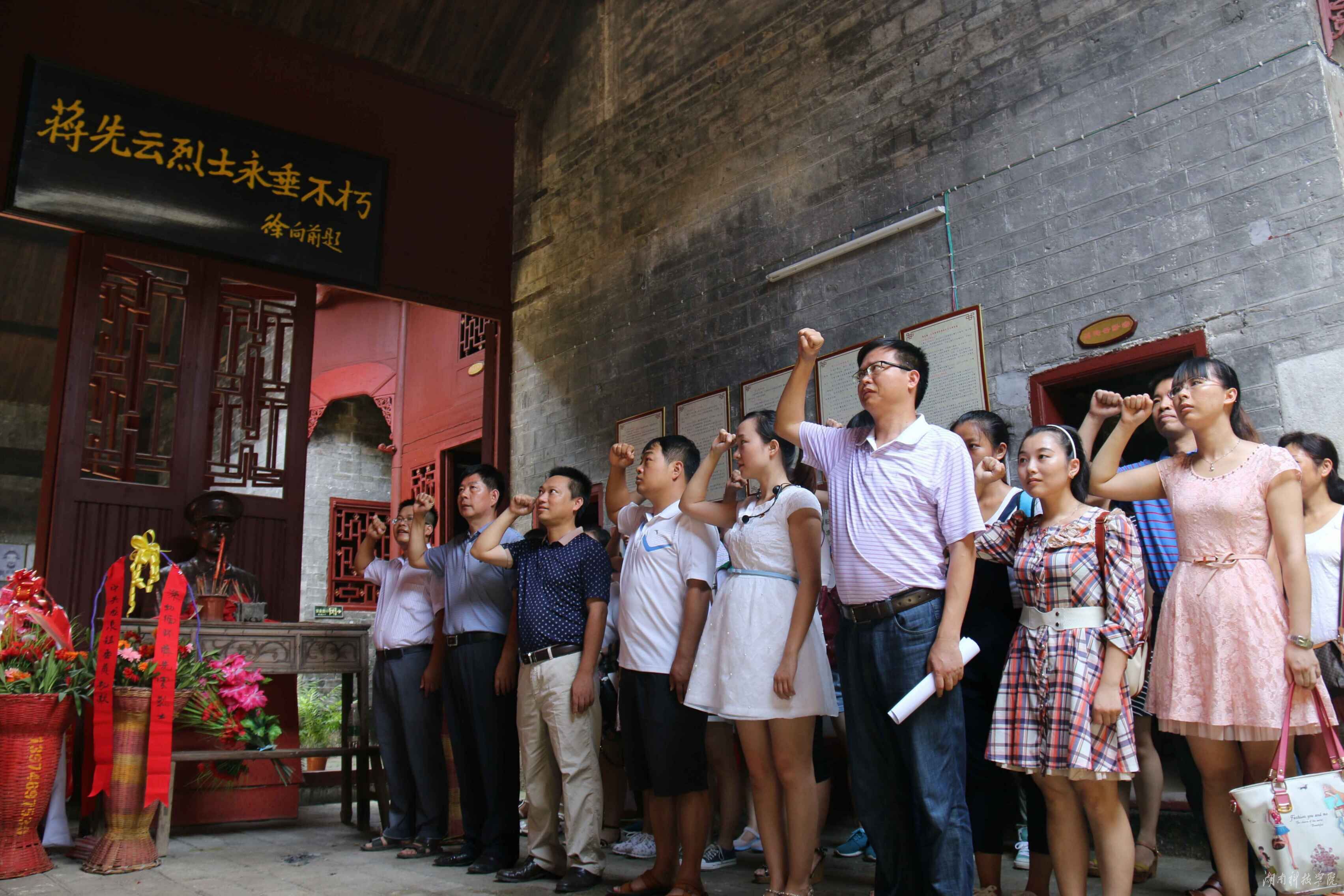 随后,该院师生党员前往革命先烈蒋先云故居,举行新党员入党宣誓暨老党员重温入党誓词活动;同时参观孝文化公园,体验百善孝为先的优良传统文化,全体党员同志表示将认真践行“三严三实”,切实做到严以修身、积善成德。