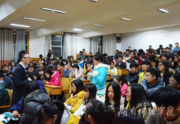 讲座伊始,周宏翔提出问题:怎样理解“学生”这个词的意义?他说,学生就要学会生存的本领,只有学会生存,才能立足于这个社会。旋即又提出“你心目中的未来是什么样子?”、“你真的了解你所在的环境吗?”、“你为市场考虑过吗?”等一系列问题引发现场同学们深思。结合自己的亲身经历,周宏翔告诫同学们,要明确自己的人生目标,只要内心有想法,并脚踏实地,付诸行动,就能最大可能地发挥自己的潜力,掌握自己的命运。