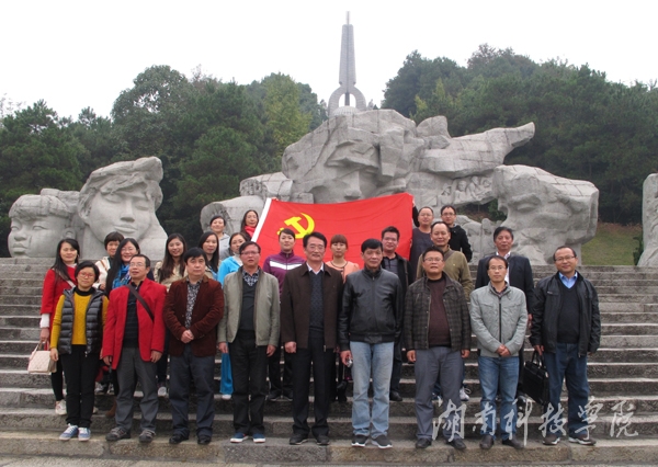 在高耸入云的烈士纪念碑前,大家面对党旗庄严肃立,系主任潘雁飞同志简要讲述了八十年前红军长征突破国民党第四道封锁线的“湘江战役”,感慨革命先烈抛头颅、洒热血的英雄气概和革命精神,号召教师党员忆苦思甜、不要忘本,兢兢业业为人民服务、为广大师生服务。系党总支副书记杨再喜同志带领全体教师党员在纪念碑前庄严宣誓。接着,熊焕颖同志作为党员代表做了简短发言。随后,全体教师踏着红军当年长征的足迹,寻找湘江源头。大家不畏路途遥远,徒步于山间曲折小路,经历两个多小时的跋山涉水终于寻找到了深山密林中的湘江源头。