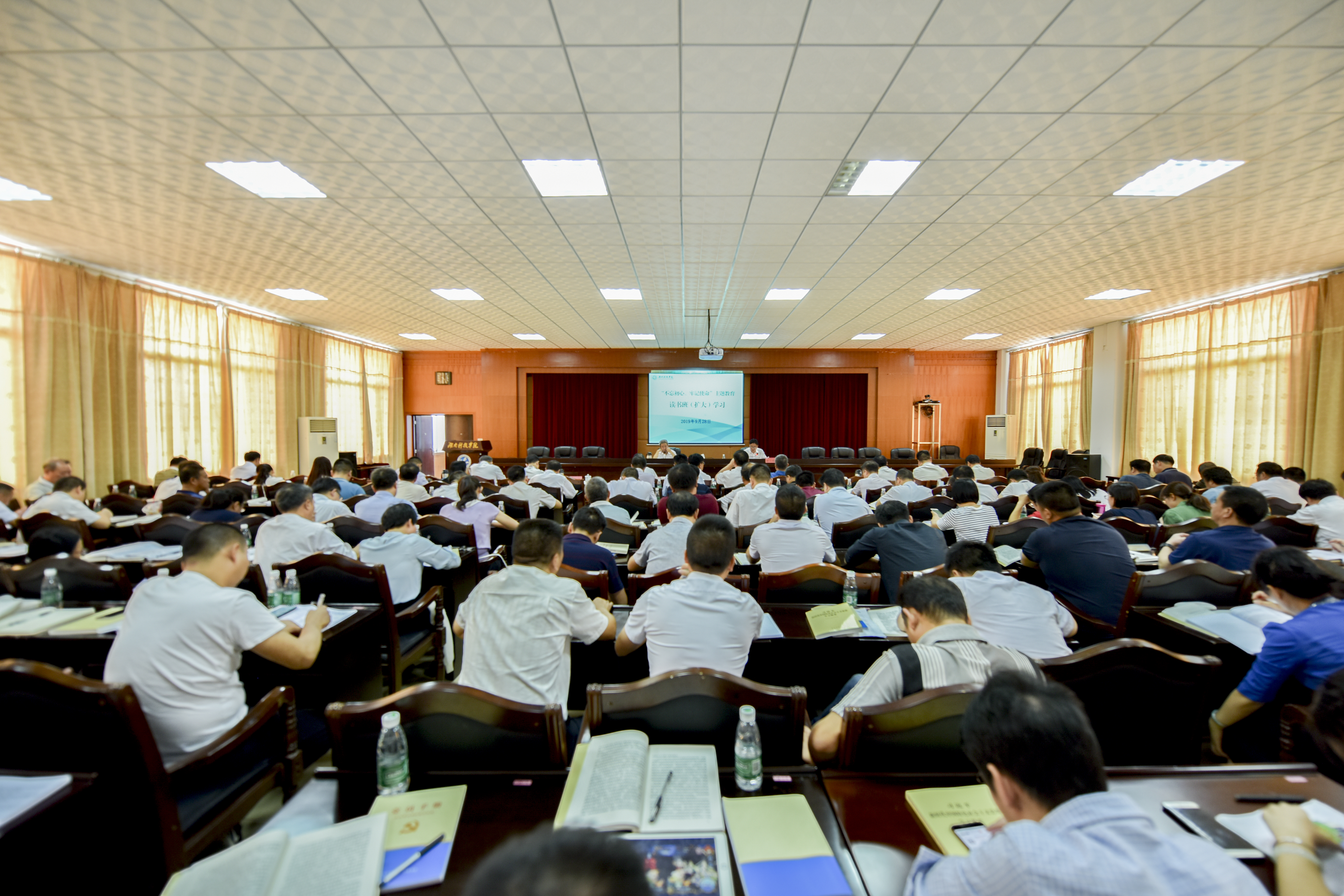 本网讯 根据学校“不忘初心、牢记使命”主题教育安排, 9月28日至29日,学校举办“不忘初心、牢记使命”主题教育读书班。党委书记曾宝成,党委副书记、校长李钢,全体校领导,党委委员,副处级以上干部参加。省委第二巡回指导组副组长王善明和联络员刘先刚参加专题研讨会。