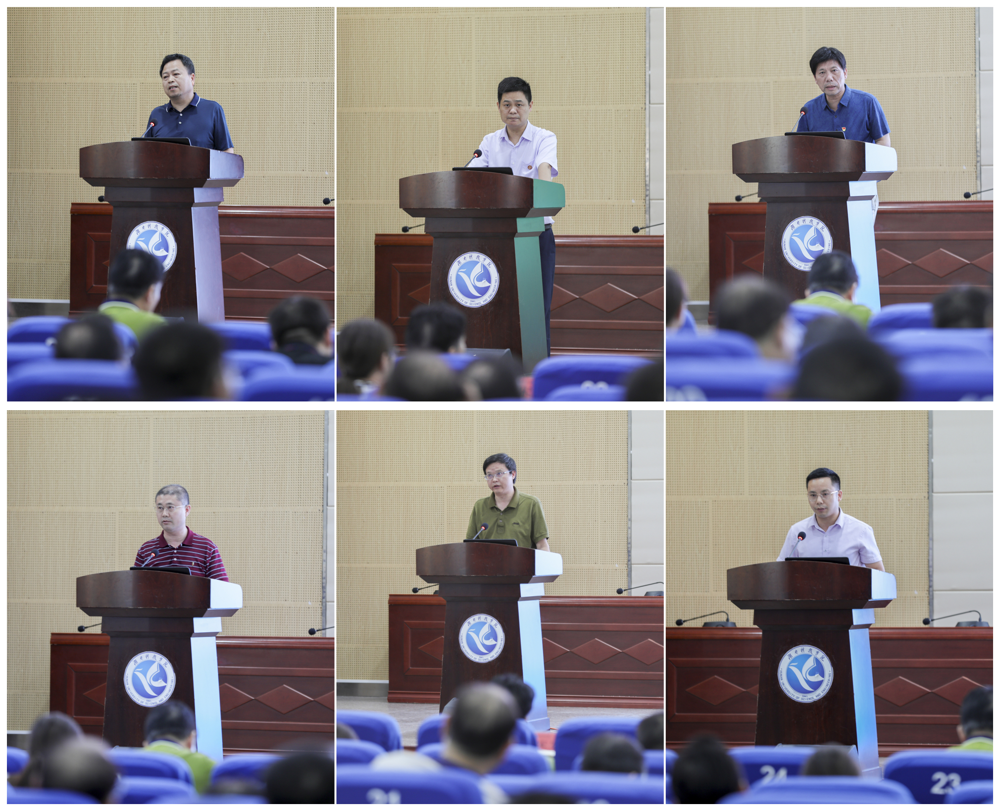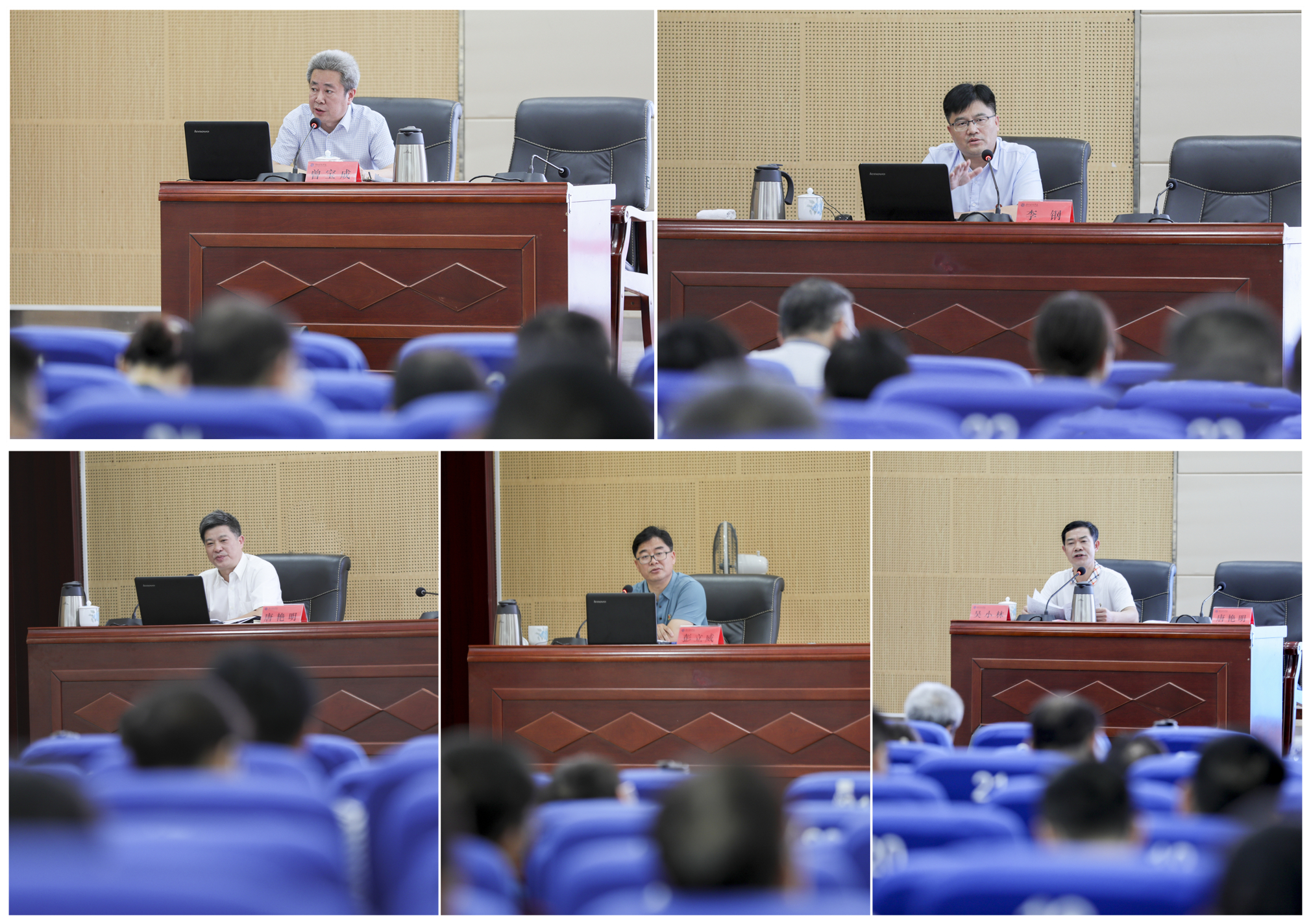 教务处处长黄文、党政办主任吴春江、发规处处长潘剑锋、人事处处长宋振文、人文与社会科学学院院长潘雁飞、化学与生物工程学院院长刘小文先后结合岗位职责,围绕教育教学改革、工作效能提升、人才队伍建设、学科建设、申硕工作和“双一流”建设作交流发言。