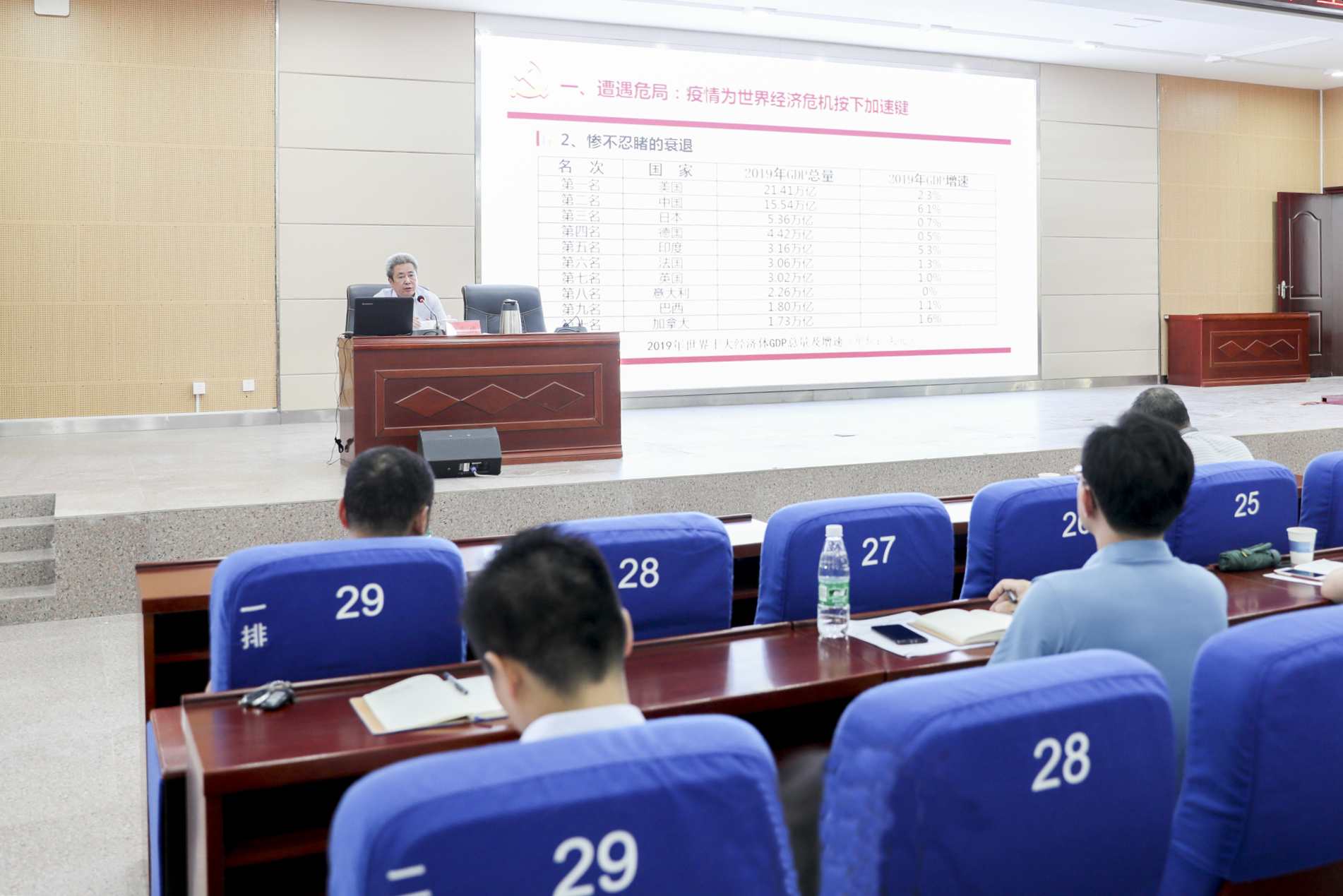 此次处级干部培训班主题内容丰富、研讨交流深入、学风严谨务实。曾宝成、李钢、唐艳明、彭立威、吴小林分别以《后疫情时代的全球巨变——中国以制度优势化危为机》《加快推进世界杯官网治理体系和治理能力现代化》《贯彻落实党的十九届四中全会精神,推进世界杯官网治理体系和治理能力现代化》《严守“六项纪律”,擦亮干部底色》《统一认识,压减预算》为题作主题报告。此外,会上对OA办公系统进行培训。