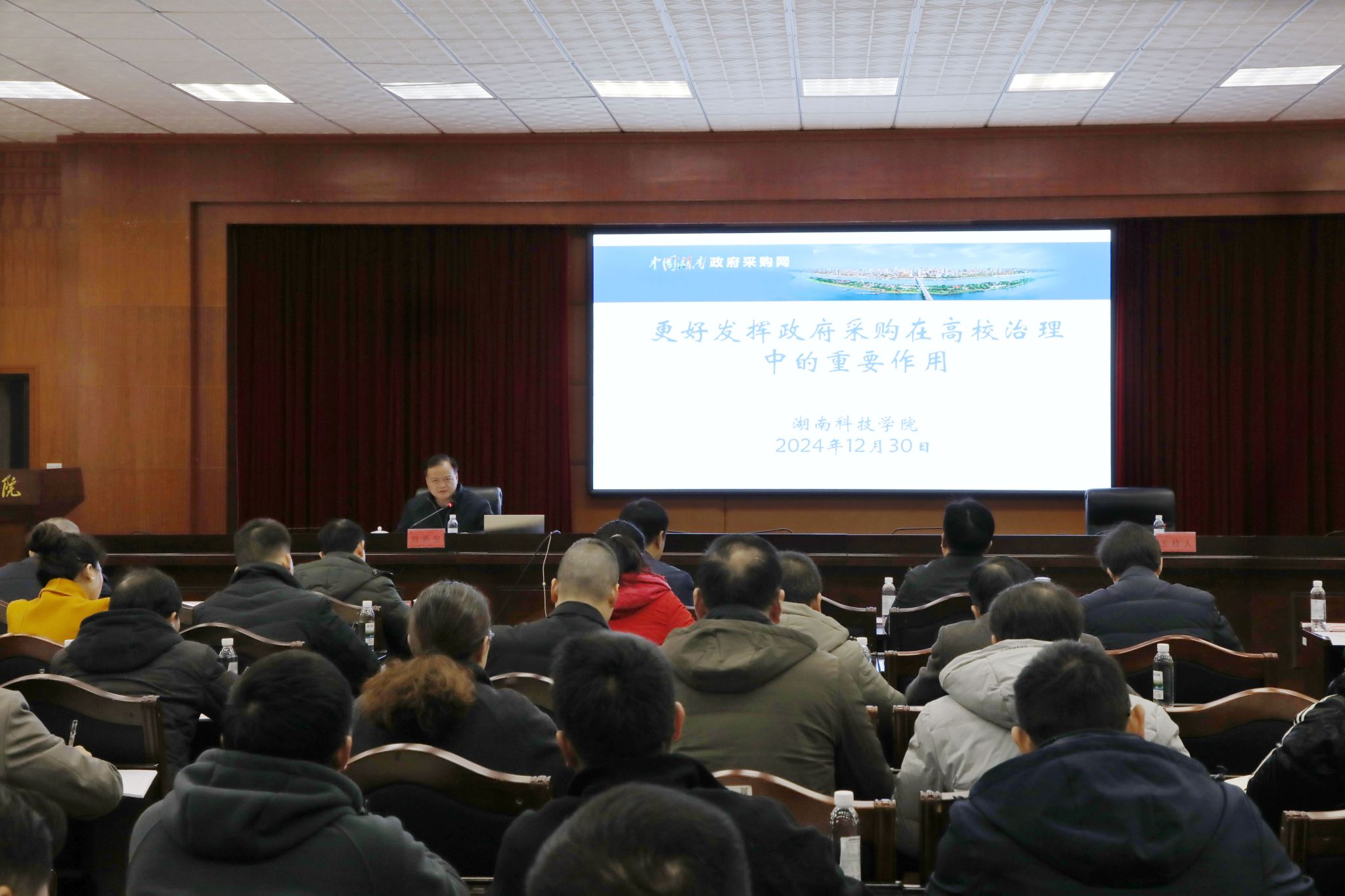 会上,省财政厅政府采购处副处长刘新安以《更好发挥政府采购在高校治理中的重要作用》为题,从“政府采购事关高校治理的体系能力、深化政府采购制度改革的核心要义、政府采购执行能力提升的基本路径”等方面深入讲述了规范政府采购流程的重要性。