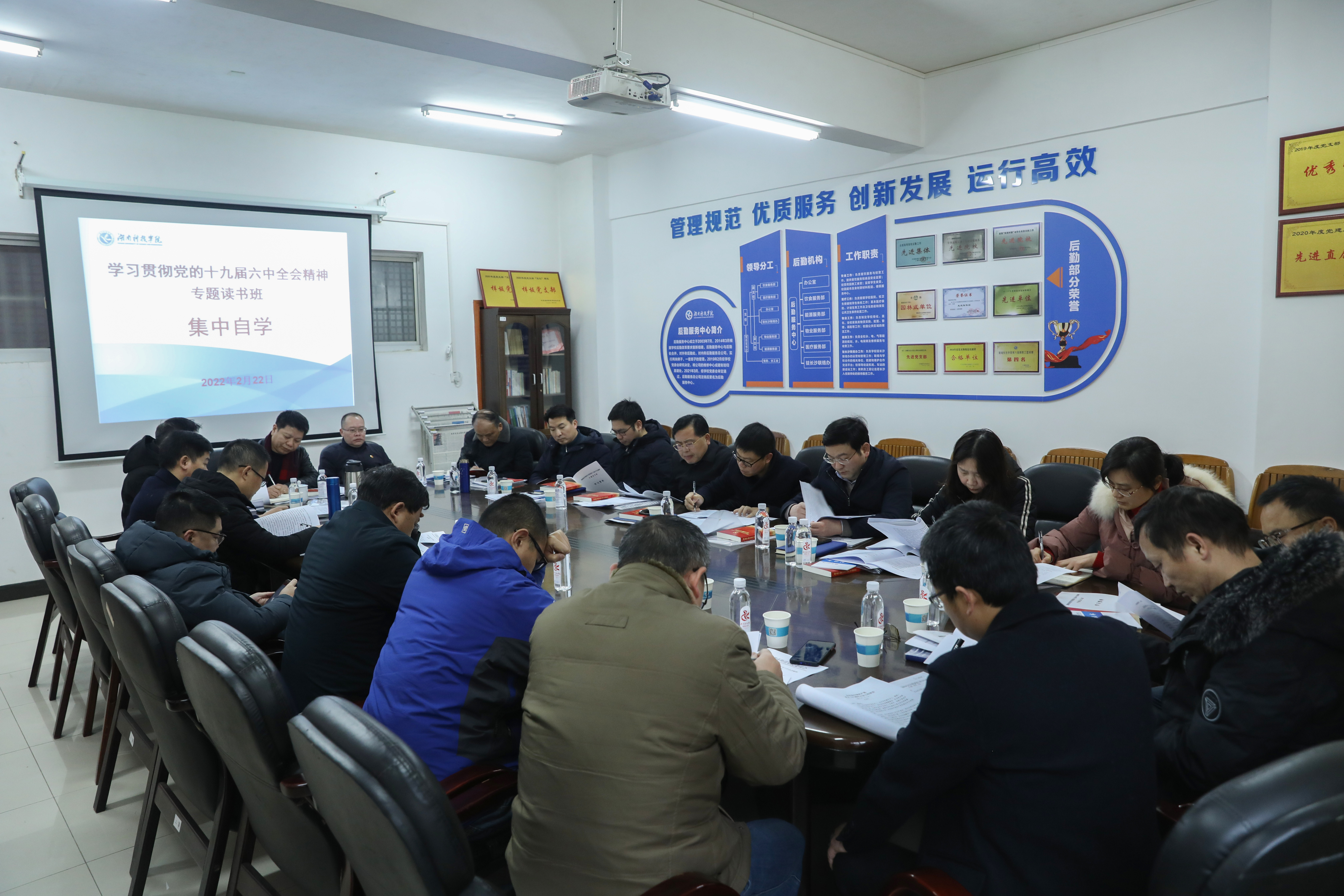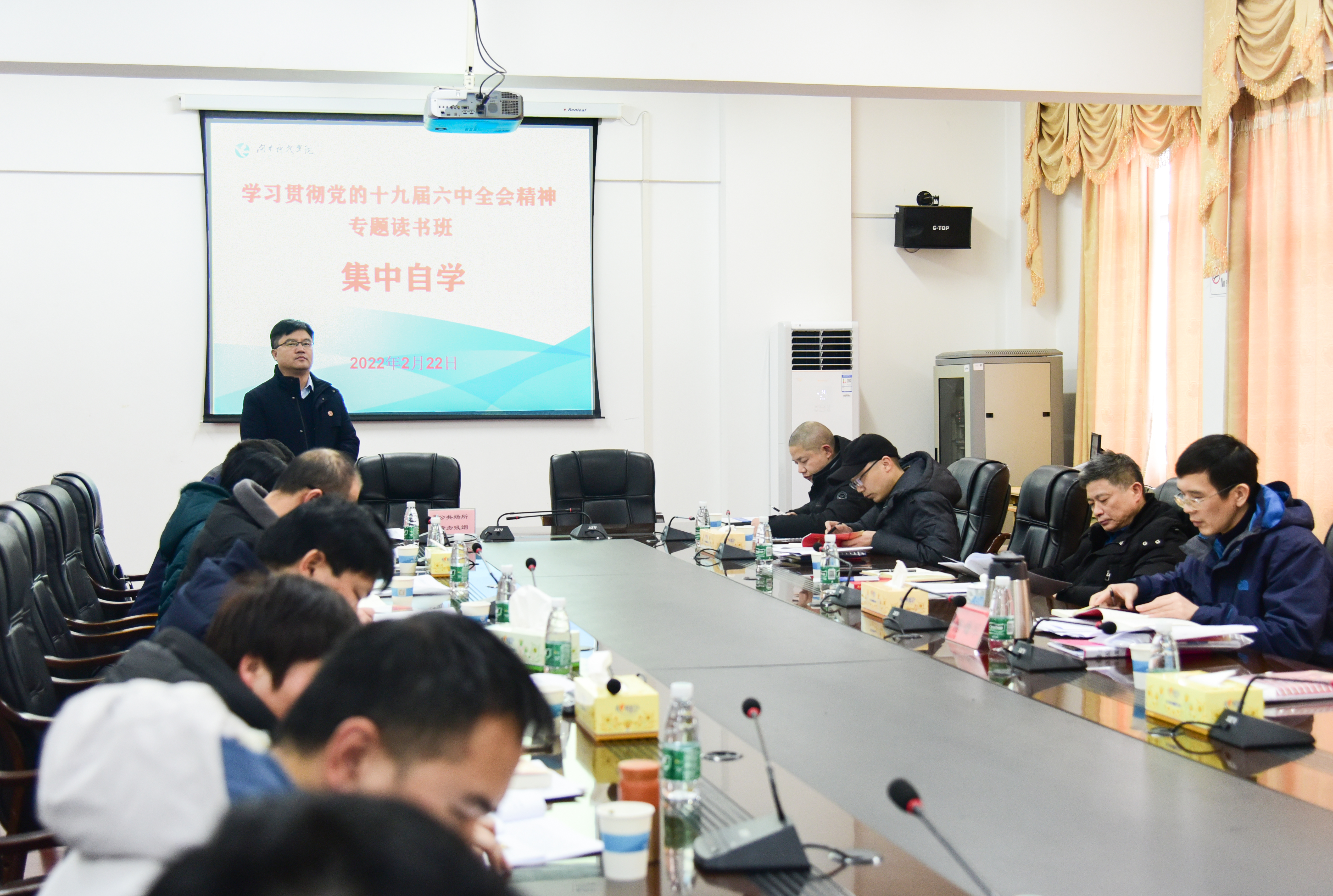 本网讯 2月22日下午,校领导及中层干部学习贯彻党的十九届六中全会精神专题读书班开班,党员干部分组开展集中自学,读原著、学原文、悟原理,原原本本学、原汁原味学,全校上下迅速兴起学习宣传贯彻全会精神的热潮。