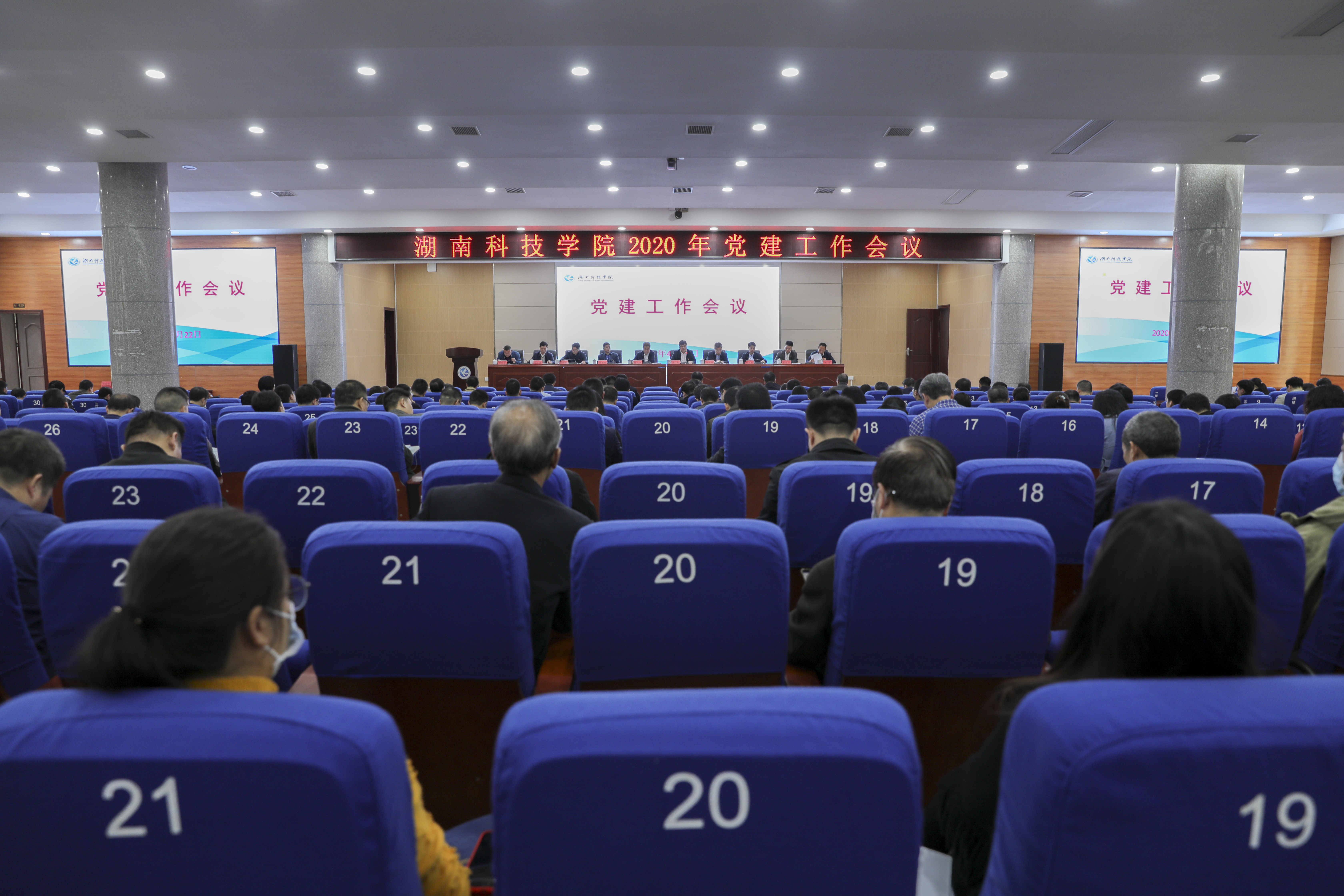 本网讯 4月22日上午,学校召开党建工作会议。会议主要任务是深入学习贯彻习近平新时代中国特色社会主义思想,贯彻落实党的十九大和十九届二中、三中、四中全会精神,总结回顾一年来学校党建工作情况,动员全校各级党组织和广大党员干部进一步凝心聚力、担当作为、狠抓落实,以高质量党建引领学校高质量发展。