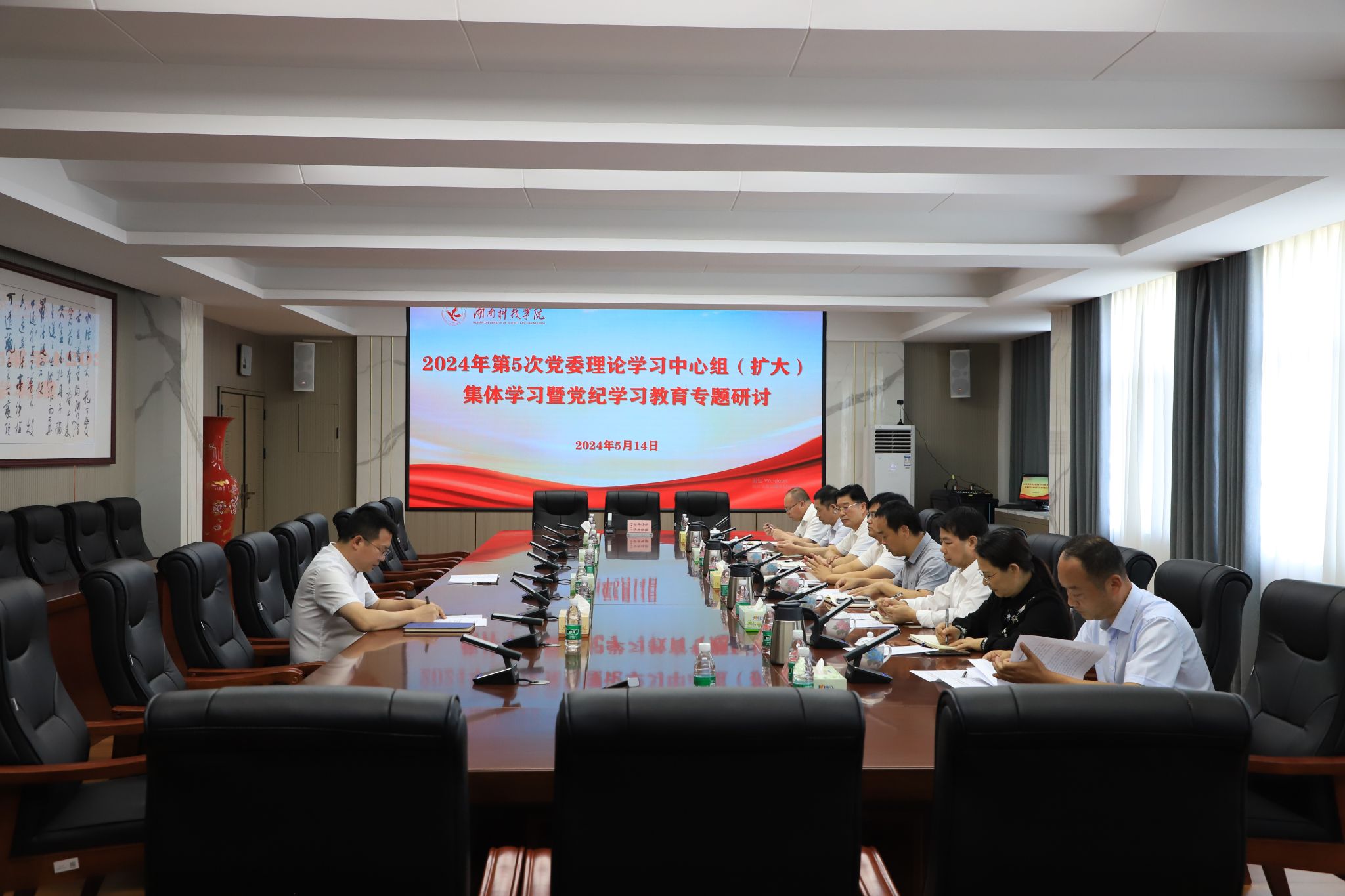 本网讯(记者 向薛峰)5月14日,学校举行2024年第5次党委理论学习中心组(扩大)集体学习暨党纪学习教育专题辅导报告会。校党委书记李钢主持并讲话。全体在校党委委员参加,副校长郑银芳、全体中层干部列席。