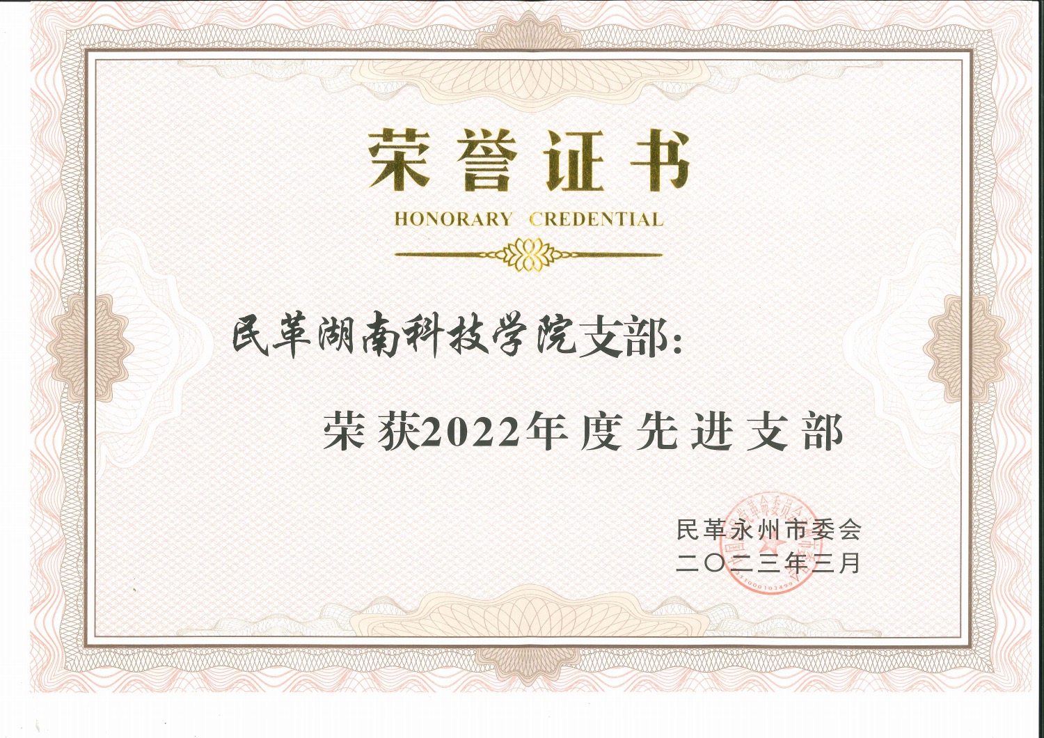 据悉,2015年至今,民革2026世界杯官方合作网站支部7次被民革永州市委评为 “优秀支部”或“先进支部”,2022年被民革湖南省委会评为省级“先进基层组织”,方芳个人获评省级“优秀党员”。