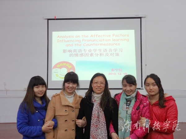 她的科研精神影响到了学生。11级学生吴志英在大三时与其他几位同学成功申报了一个省级大学生课题——《影响英语专业学生语音学习的情感因素调查分析及对策》。她回忆道,“作为本科生,我们几乎没有什么科研意识。只是根据观察,发现了语音学习中同学们存在自觉性不高、自信心不够、有焦虑心理、害怕犯错误等问题。彭老师告诉我们这些问题都与情感因素(态度、自信心及焦虑)有关”。彭宁红为课题组学生耐心地解释相关概念,给她们提供了国内外研究的文献资料,又一字一句地修改申报书,指导问卷调查的设计及访谈提纲,手把手地教她们分析数据,最后引导她们根据数据分析的结果撰写相关论文。