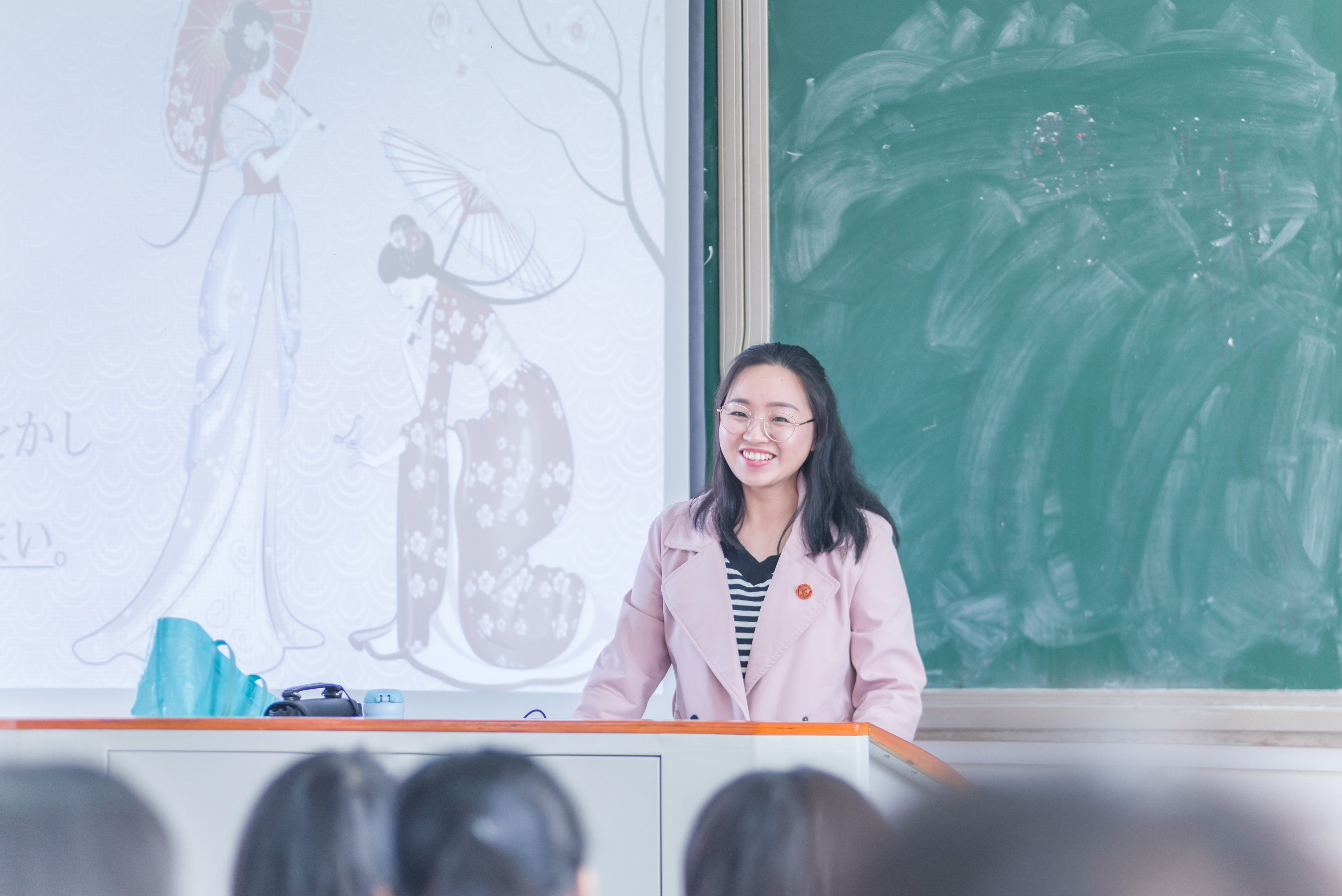 滴水穿石非一日之功。每一个看似不经意的改变都是用心付出的积累和沉淀。在很多同学眼中这也许只是璐姐一时兴起的要求,背后却是彭璐做大量“功课”的成果:多种形式的情境式会话练习、境式模拟造句、模拟写会话等创新模式层出不穷,都是她牺牲与家人团聚时间、陪伴孩子成长时间、与亲朋好友聚会时间,奋力追求最佳教学效果夙夜不懈的最美呈现,目的是为了激发学生的语言学习兴趣。当她发现同学们对日本的文化历史感兴趣的时候,又开始在课后勤搜集查找资料,把知识要点融入这些日本文化和风土人情中,让学生在学习的过程中增长见识,而不是一味的记住了字词本身。