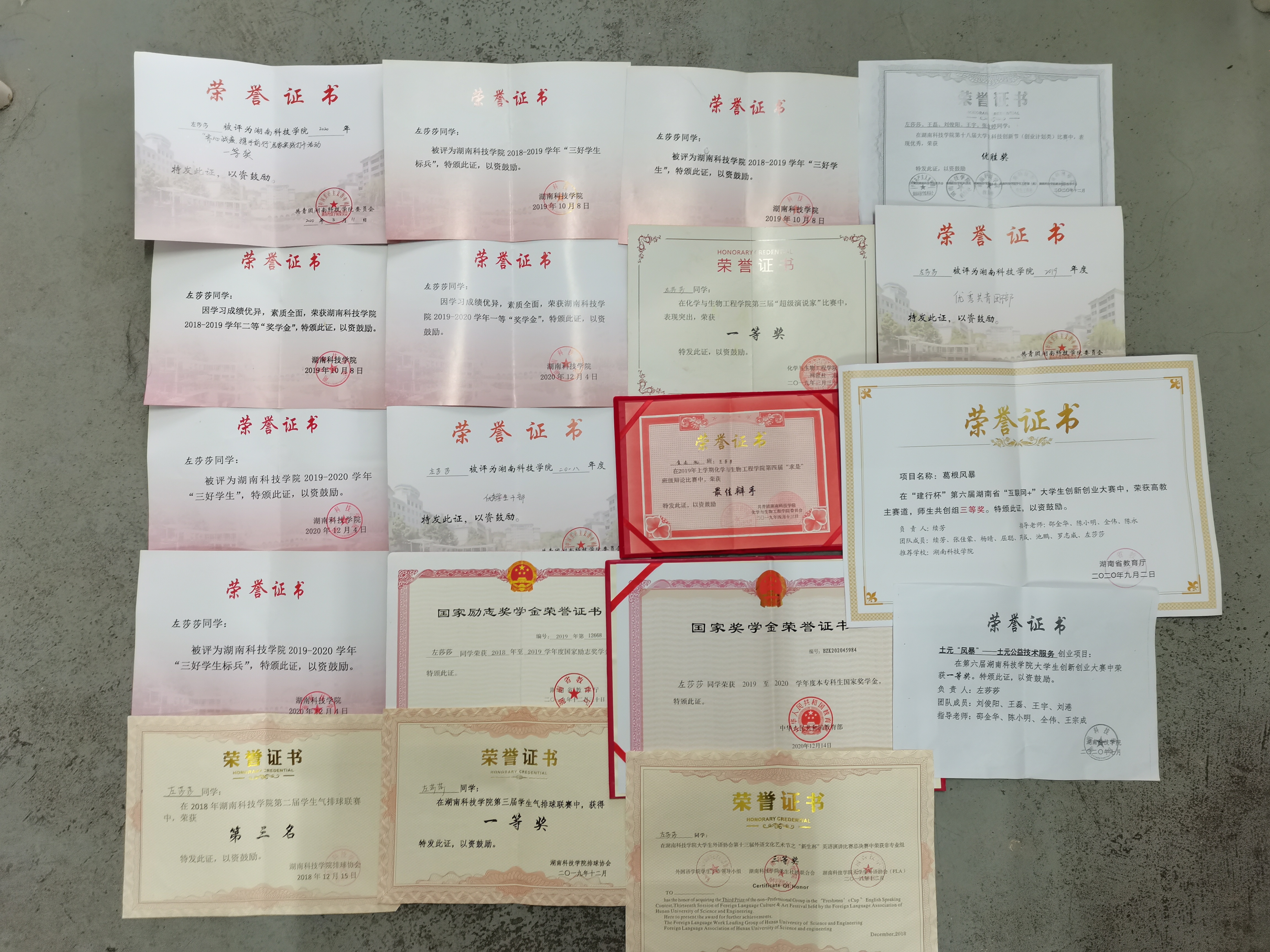 【故事】“不积跬步无以至千里,不积小流无以成江海”。在学习上,左莎莎既是耕耘者也是收获者。上理论课时她十分认真,第一排的座位成为她的“专属宝座”,而她亦成为别人眼中的第一排“钉子户”。课堂不走神、提前预习、课后认真完成老师布置的作业、考试周努力学习、不偷懒,这些都是左莎莎保持优秀成绩的方法。此外,实验课上,左莎莎也是追求卓越的人夜晚的实验室总为她而亮灯。她曾在实验课的一个训练上连续失败了三次,“那个时候我时常静不下心来做实验,而做实验又需要很久,几乎每次都会持续6个小时。”在多次失败的情况下,左莎莎选择向老师申请跟随别的班把实验再做一次,直到成功为止。她似乎永远带着一股不向困难低头的劲。学习过程中的稳扎稳打、厚积薄发,换来的是考场上的旗开得胜。左莎莎大学三年的成绩一直保持专业第一,并获得国家奖学金、国家励志奖学金等。