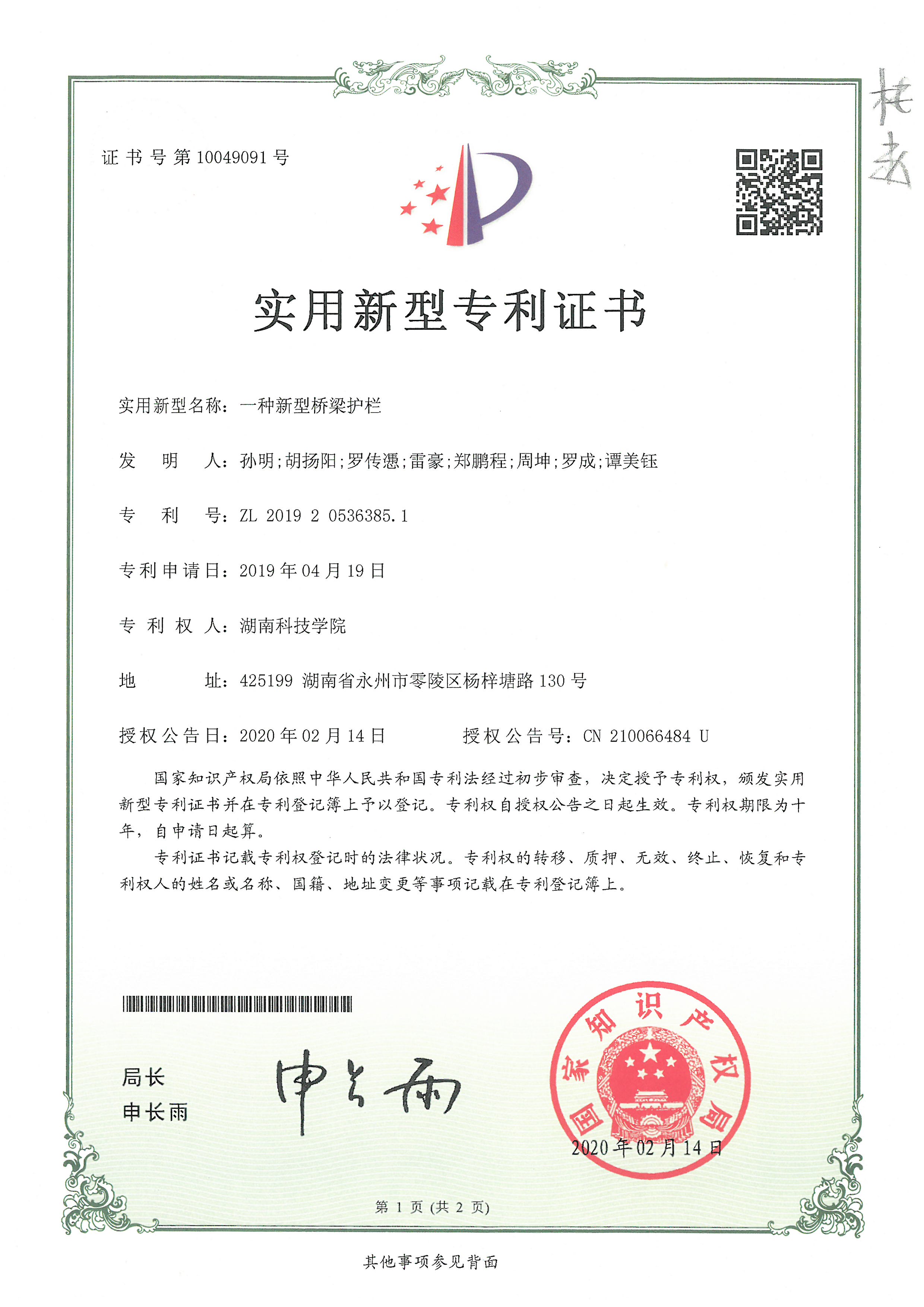 孙明专利ZL201920536385.1桥梁护栏实用新型