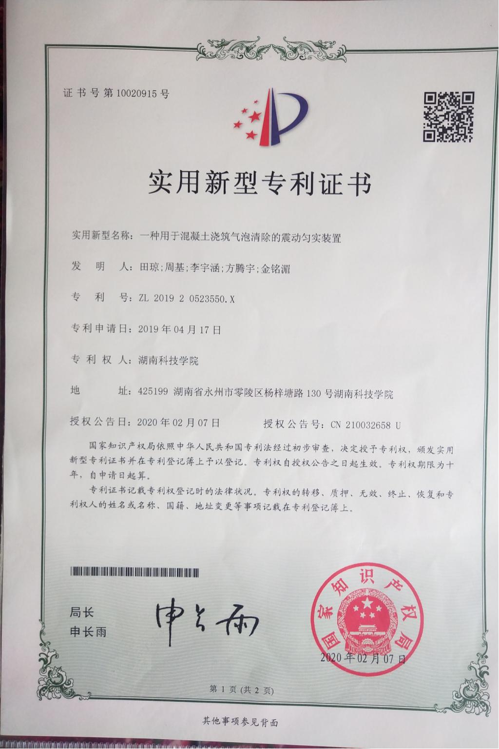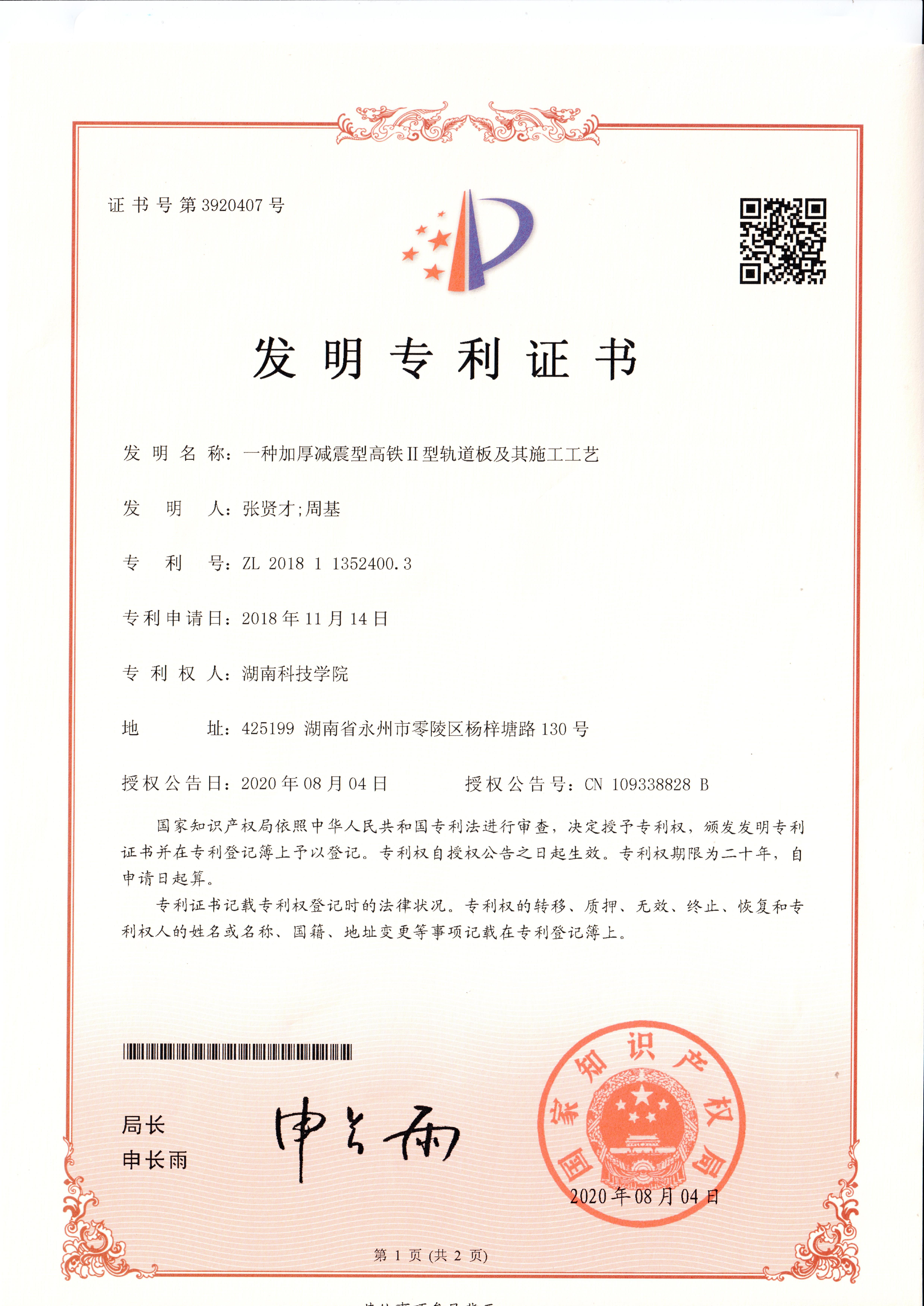 李仁平专利ZL 202020122301.2一种平屋顶透水运动场地-实用新型专利证书(签章)