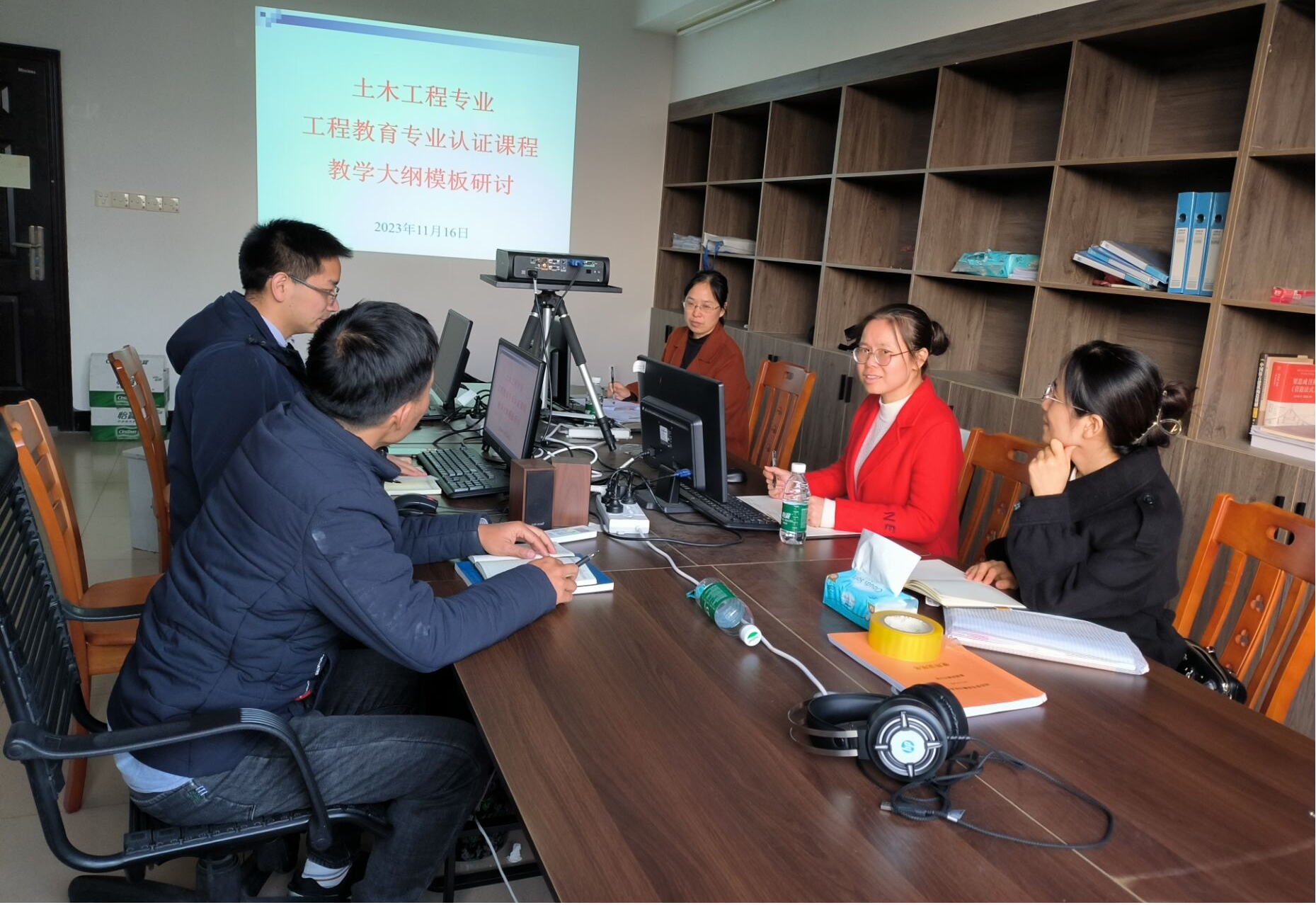 (通讯员 何玉荣)1116土木工程专业工程教育认证小组在逸夫楼408室召开课程教学大纲研讨会主管教学副院长何永红系主任、专业认证小组全体成员参加了会议