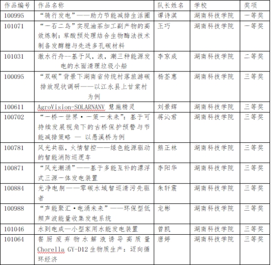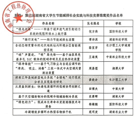 第三届湖南省大学生节能减排社会实践与科技竞赛获奖作品名单