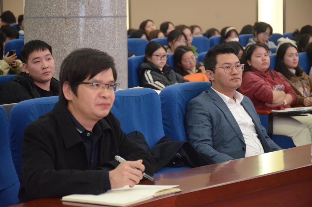 本网讯(通讯员:张健)11月30日下午,文法学院为积极推动2024届毕业生就业工作在学校潇湘大讲堂举行了专题讲座,本次讲座特邀学校招生就业与创新创业指导处副处长赵荣生教授、文法学院中文系主任黄丽博士为同学们答疑解惑。文法学院党总支书记张能泉、2020级学生辅导员张健以及2024届全体毕业生共同参加此次活动。