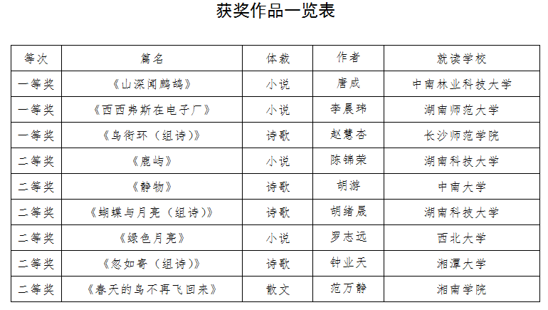 附:第二届湖南高校大学生征文评审结果