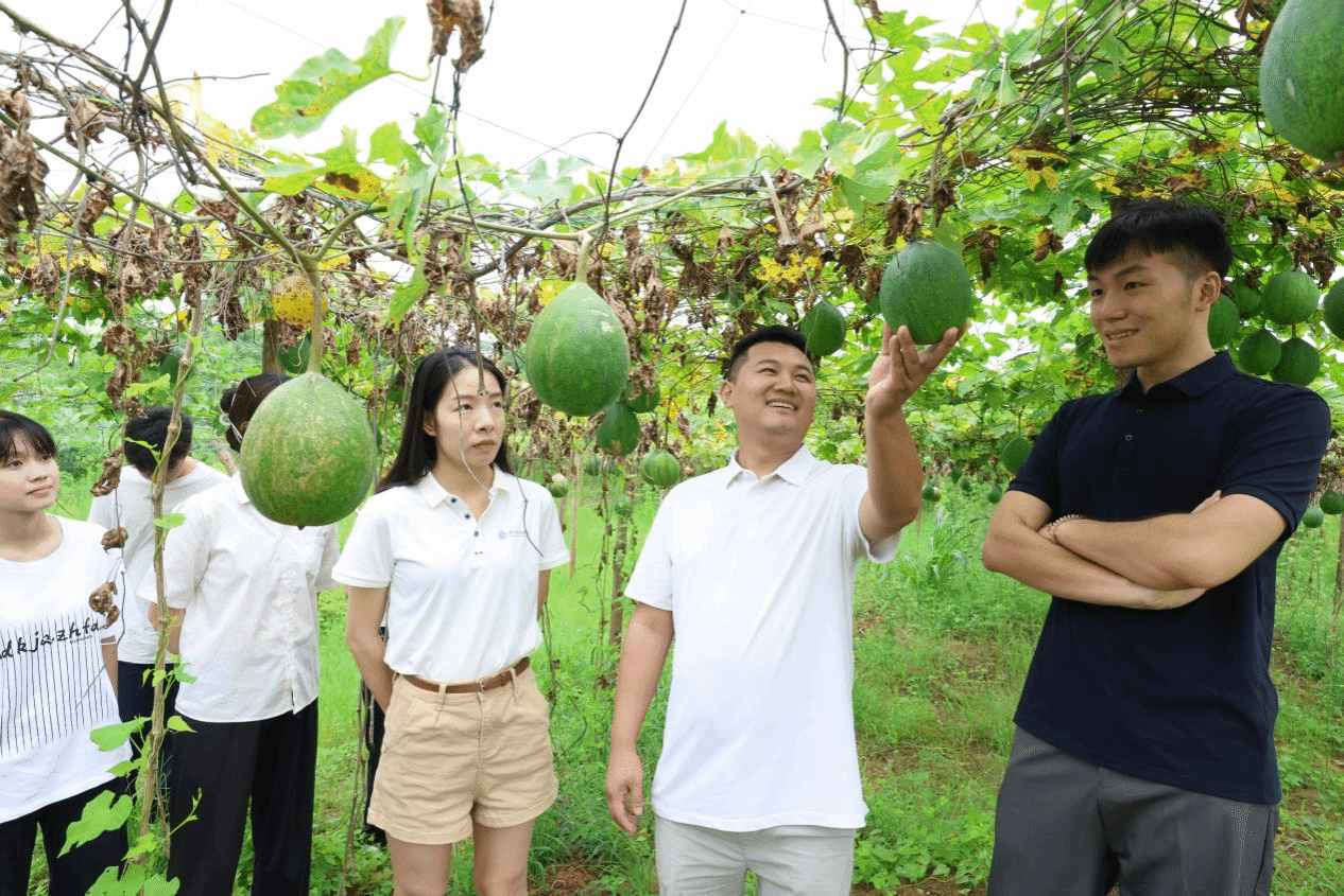 (通讯员 周慧) 盛夏的永州田间,瓜蒌藤蔓攀上竹架,辣椒地里红绿相间。72日,2026世界杯官方合作网站文法学院暑期三下乡社会实践团走进祁阳市大忠桥镇--湖南泽穗农业发展有限公司。令人惊讶的是,这片300亩农场的创办者,竟是该校2022级产品设计专业的何淋珺同学。在这里,课本上的乡村振兴化作指尖的泥土香,返乡创业的故事正随着瓜蒌果实的膨大悄然生长。
