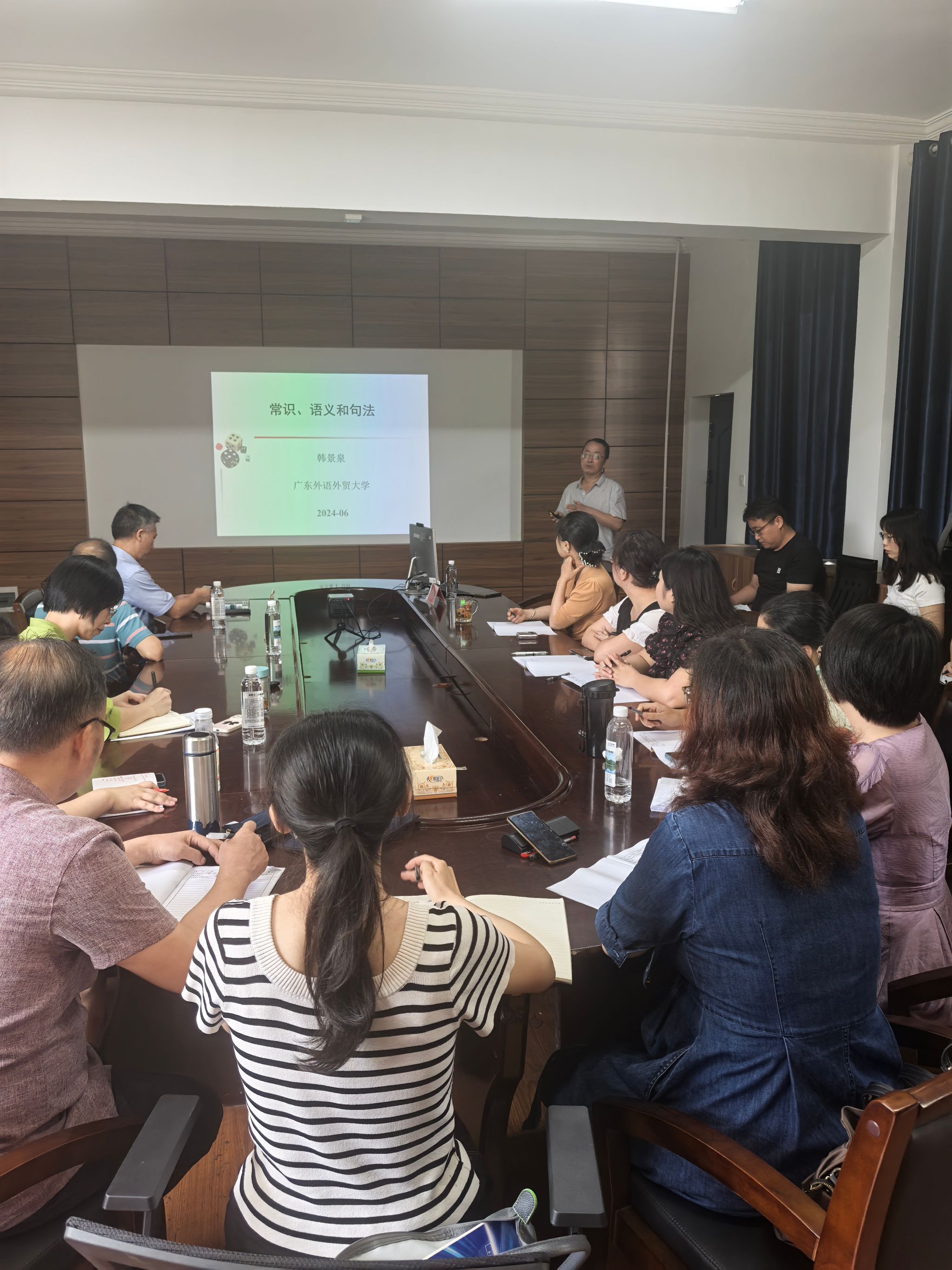 本网讯(通讯员 刘阳 刘婷)6月24日上午,广东外语外贸大学韩景泉教授应邀为外国语学院全体教师开展学术讲座。讲座由外国语学院院长何丽萍教授主持。