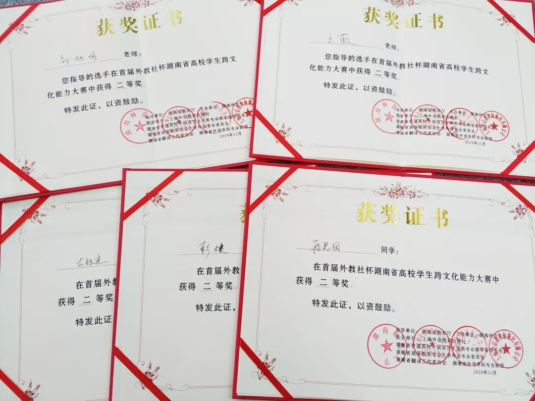 本次大赛由教育厅指导,湖南师范大学主办,共吸引了中南大学,湖南大学等41支代表队参赛。竞赛分为复赛和决赛两个阶段,复赛于11月24日完成,经过一天的激烈角逐,有14组参赛队从41组中胜出进入到25号的决赛环节。决赛分文化知识问答、情景评述和讲述中国故事三个环节,最后根据复赛和决赛的综合成绩决出奖项。最终,世界杯官网团队以总分排名第八的成绩荣获该奖项,团队指导老师为外国语学院的郭旭明老师和王薇老师。