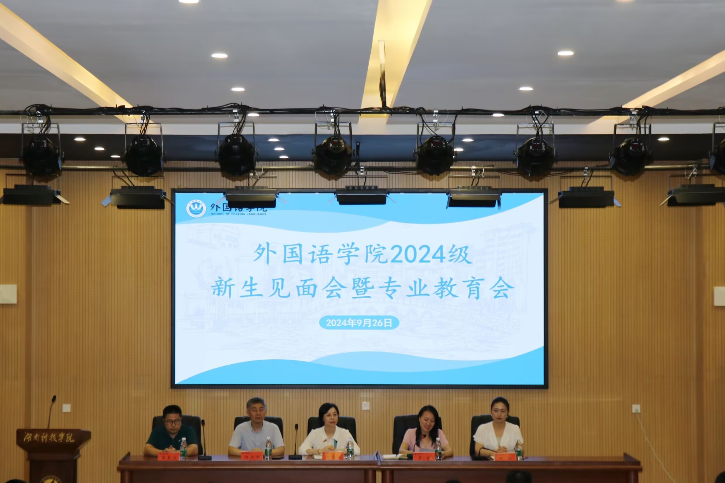 本网讯(通讯员 李灵婵 王素芳)9月26日晚,外国语学院2024级新生见面会暨专业教育会在博雅楼东三教室举行。院长何丽萍,副院长何建军、胡维、黄昊文出席会议,会议由党总支副书记罗晶主持。