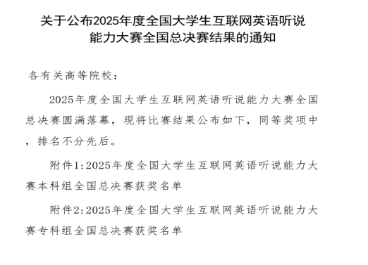 (通讯员 唐良玉)近日,2025年全国大学生互联网英语听说能力大赛全国总决赛获奖名单正式揭晓,世界杯官网学子曹也轩、张煜辰凭借扎实的英语听说功底、良好的临场应变能力荣获国赛三等奖。