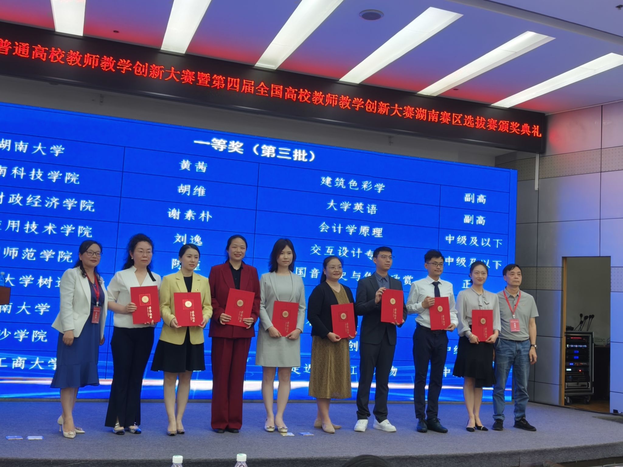 本网讯(通讯员 张文君)近日,由湖南省教育厅主办的2024年第四届湖南省普通高校教师教学创新大赛决赛暨第四届全国高校教师教学创新大赛湖南赛区选拔赛在南华大学圆满落下帷幕。经过紧张激烈的角逐,我院胡维教学团队(组员包括张文君、唐良玉、刘婷)荣获新文科组一等奖,本次获奖实现了我院在该项赛事上获奖“零”的突破。
