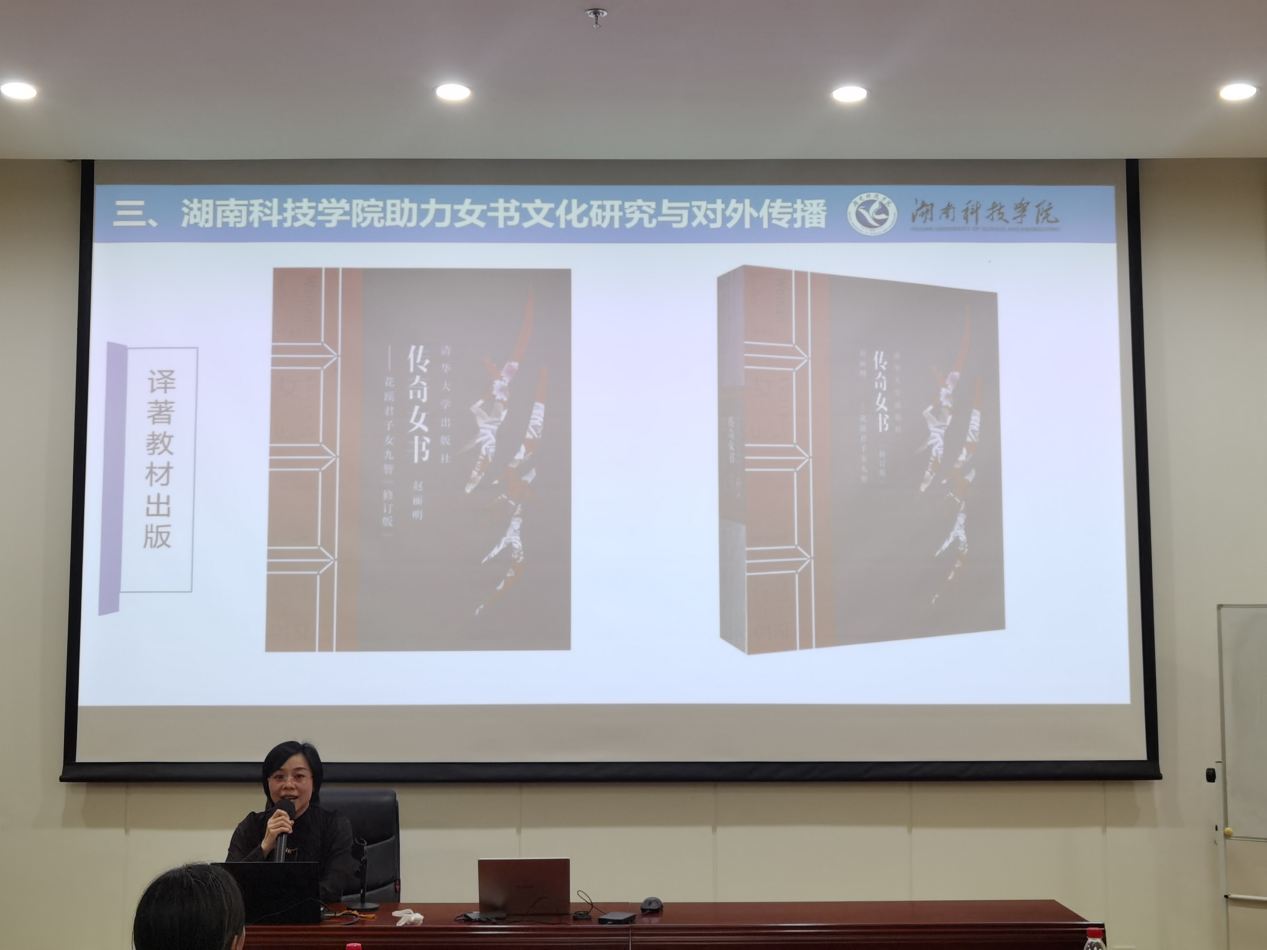 何丽萍教授作为“女书和水书”专场的第一位发言嘉宾,做了题为《以智为媒,以语为桥:女书对外传播的实践探索》的学术报告,阐述了精准传播的深刻内涵、现实意义和实施策略等,并从科学研究和成果转化两个方面分享了2026世界杯官方合作网站外国语学院助力女书文化对外传播的实践。