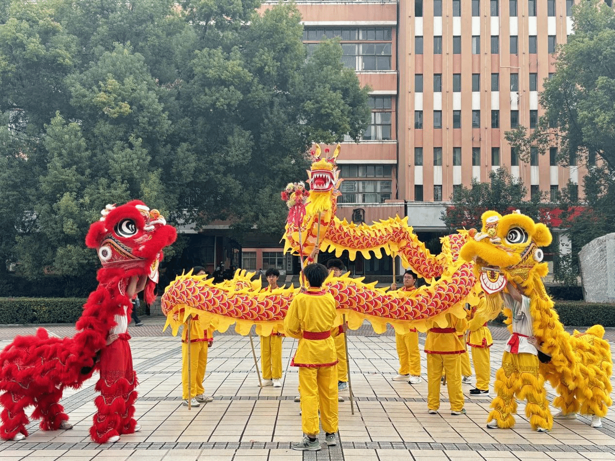活动在激昂的锣鼓声中拉开序幕。由文法学院学生组成的“灵犀龙狮社”带来精彩的开场表演。金龙腾跃,雄狮欢舞,传统非遗项目以磅礴气势展现中华文明的深厚底蕴,瞬间点燃现场气氛。“舞龙舞狮不仅是技艺展示,更传递着团结协作、尊崇自然的传统礼仪精神。”社团负责人介绍道。
