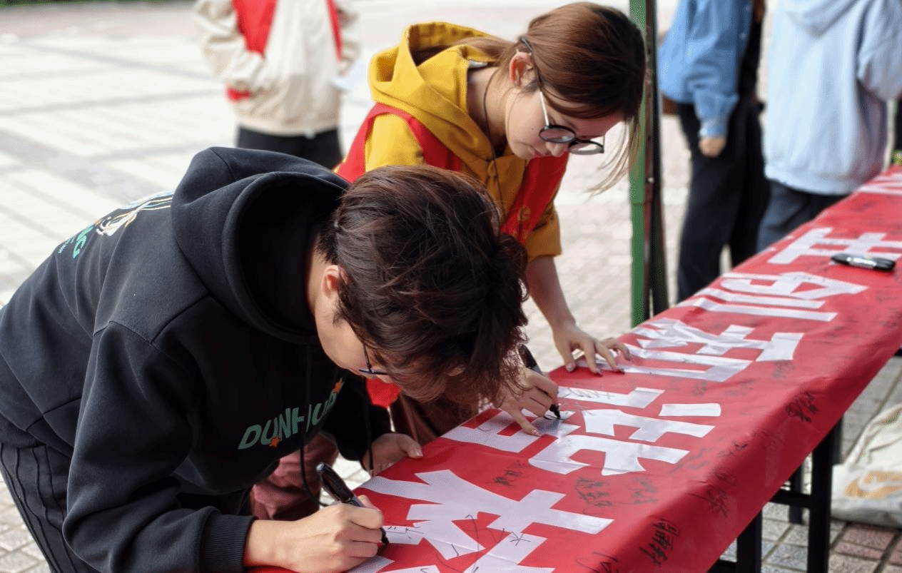 广场中央设置的“践行文明礼仪,共创和谐校园”签名打卡墙前人头攒动。师生们郑重签下姓名,许下践行文明的庄重承诺。“这样的活动让礼仪不再是书本上的教条,而是可感可触的生活实践。”旅游与文化产业学院孙蕊同学在完成打卡后表示。