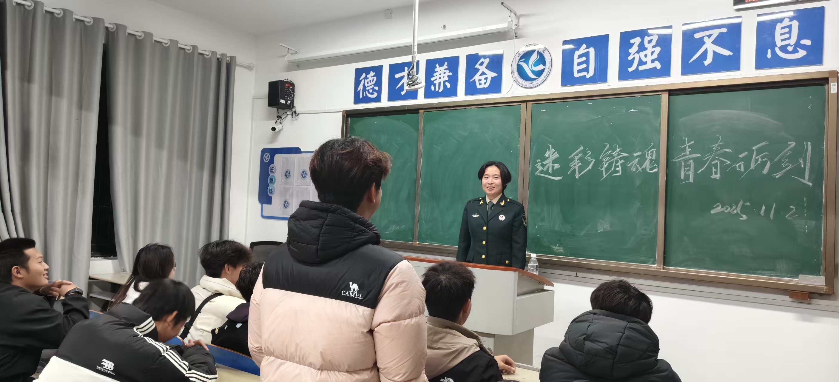 为传承红色基因,筑牢青年学子爱国强军思想根基,2025年11月21日,学校迷彩军营社在明德楼304开展“迷彩铸魂,青春砺剑—感悟军营力量,书写青春华章”红色影片观影活动,集中观看抗美援朝题材影片《长津湖之水门桥》。社团全体成员及各学院军事爱好者参与活动,在光影流转中重温革命岁月,汲取精神力量。
