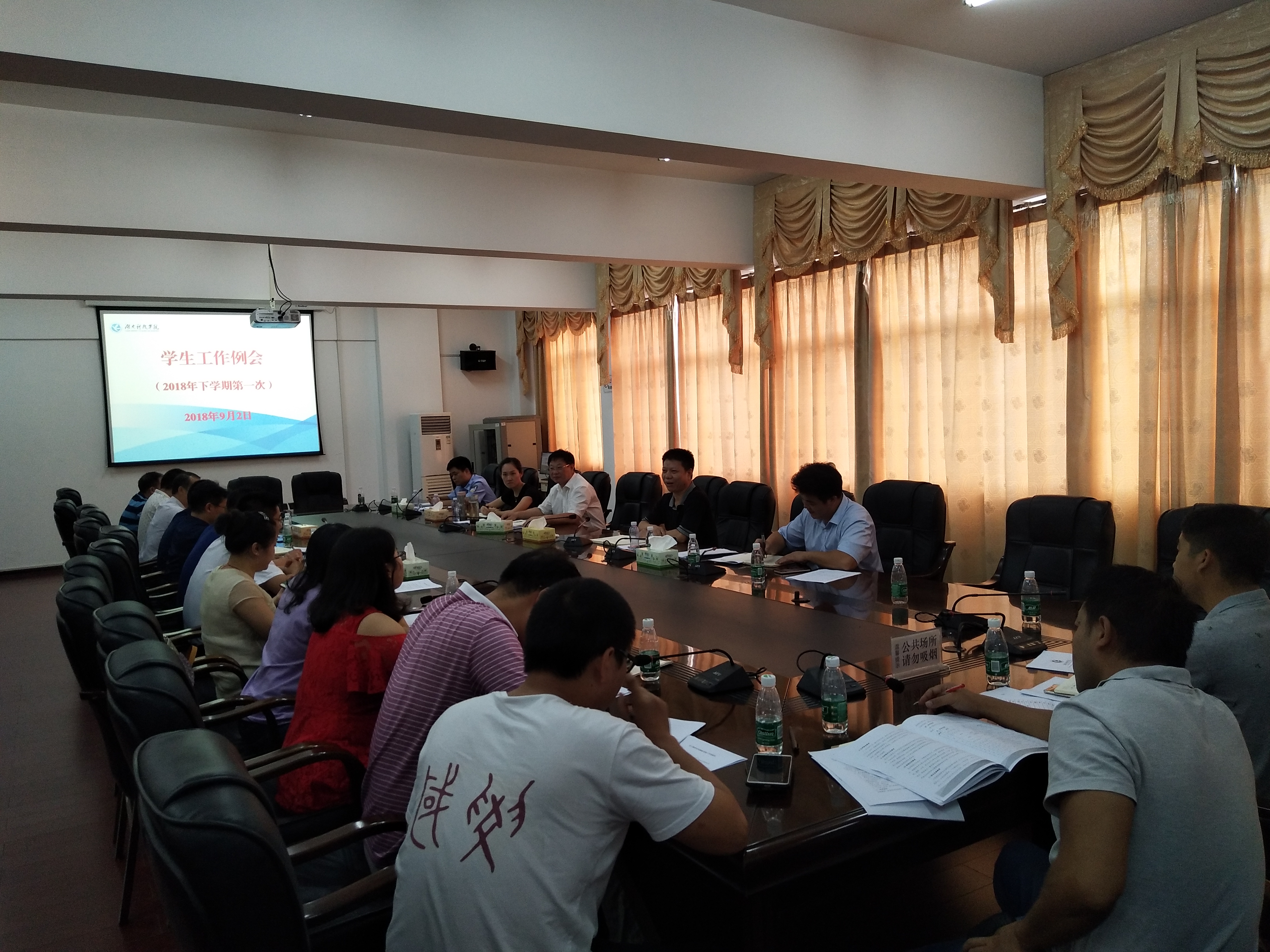 9月3日下午4:30,学校召开第一次学生工作例会,会议由学生处长唐华山主持,副校长程智开、保卫处长吴春江、校团委主要负责人,各教学学院党总支副书记以及学工部相关人员参加了会议。