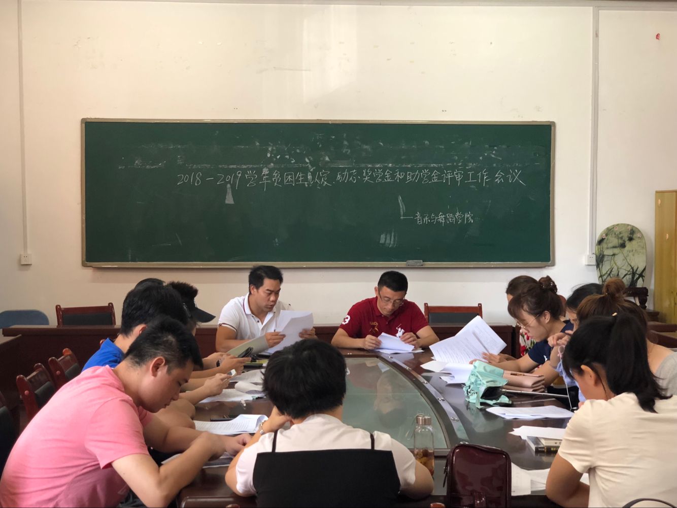 本网讯(通讯员焦晨月)为准确把握政策变化,熟悉工作流程,明确工作要求,切实做好学生奖励与资助工作,9月20日,音乐与舞蹈学院在荟英楼召开了2018-2019学年学生奖励及资助工作专题培训会。该院党总支副书记蒋磊、学工办主任刘华剑、资助专干吴潭、新生辅导员老师张浪及全体班主任参加了本次会议。