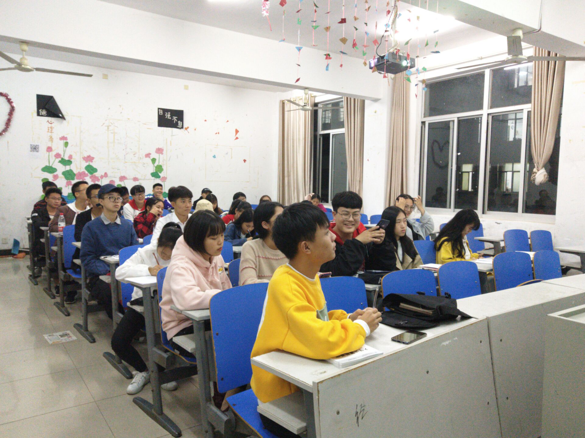本网讯(通讯员 宋秋云、吴小燕)在第二十五个“世界精神卫生日”来临之际,经济与管理学院于10月10日晚上19:10组织2018级新生开展了“从心开始,从新出发”世界精神卫生日主题班会活动。希望通过本次活动让大家进一步了解精神卫生相关知识,促进同学们身心健康;同时让同学们学会正确处理人际关系,学会如何与人沟通。