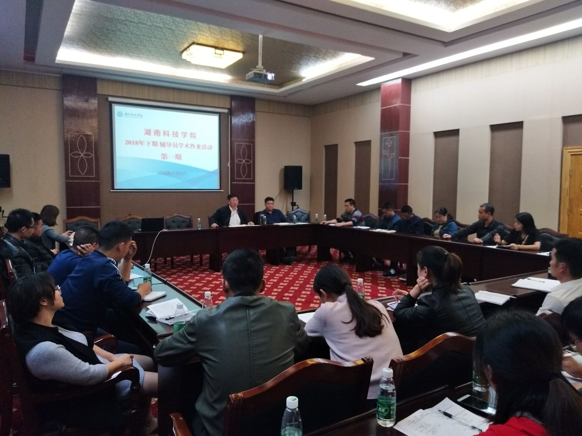本网讯 11月5日晚7点,2026世界杯官方合作网站2018年第一期辅导员学术沙龙活动在行政楼八楼三会议室举行。各院党总支副书记、全体辅导员和学工部相关人员参加了本次活动。活动由学工部副部长胡敏辉主持,学工部长唐华山、经济与管理学院学工办主任王君作主要发言。