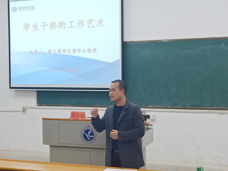 本网讯(通讯员潘洵)为了进一步提升学生干部的工作艺术,11月14日晚,旅游与文化产业学院在明德楼206开展了第二期学生干部培训,本次培训由校学工部长唐华山教授主讲,学院党总支副书记潘清远主持,学院全体学生干部参加培训。