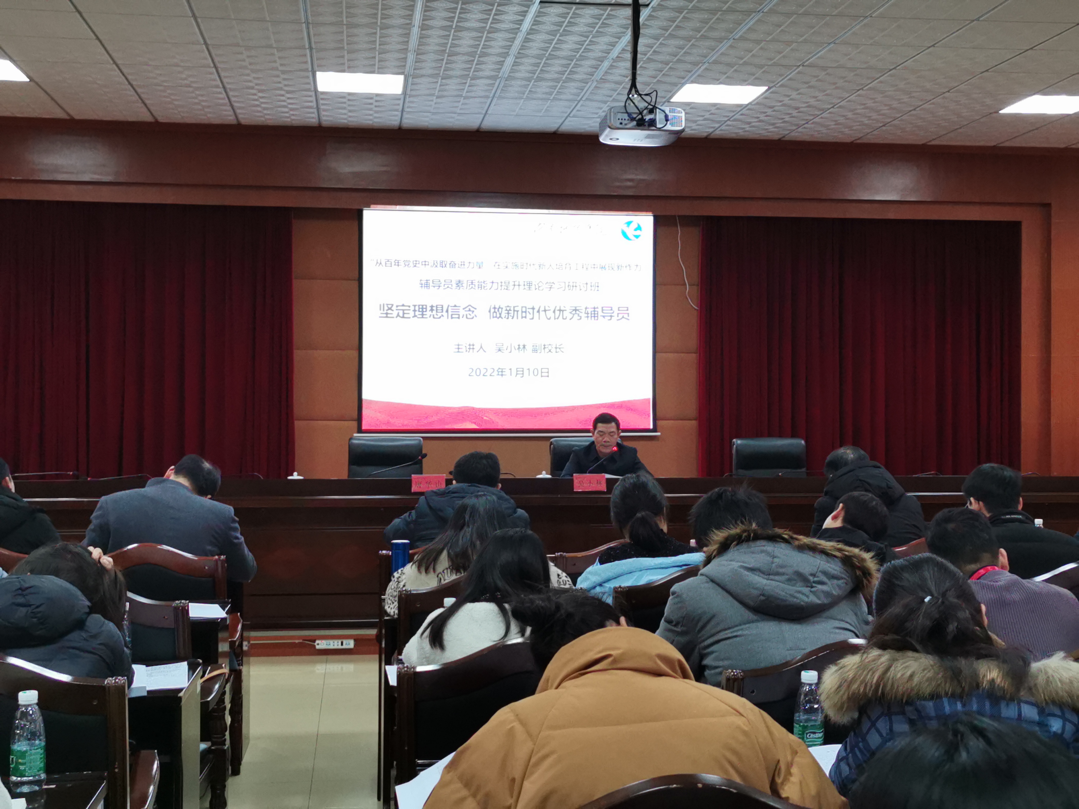 1月10日,开班仪式上校党委书记曾宝成作了《唯有学习,方可走向未来》主题报告,他强调新时代加强理论学习意义重大,辅导员是开展大学生思想政治教育的骨干力量,是高校学生日常思想政治教育和管理工作的组织者、实施者、指导者,他就辅导员该学什么、怎么学进行了深入阐释。校党委委员、副校长吴小林作了《坚定理想信念,做新时代优秀辅导员》主题报告,他围绕何为理想信念,产生理想信念缺失的原因以及怎样坚定理想信念三个方面进行了详细解读,并就如何做一名优秀辅导员提出十点要求。