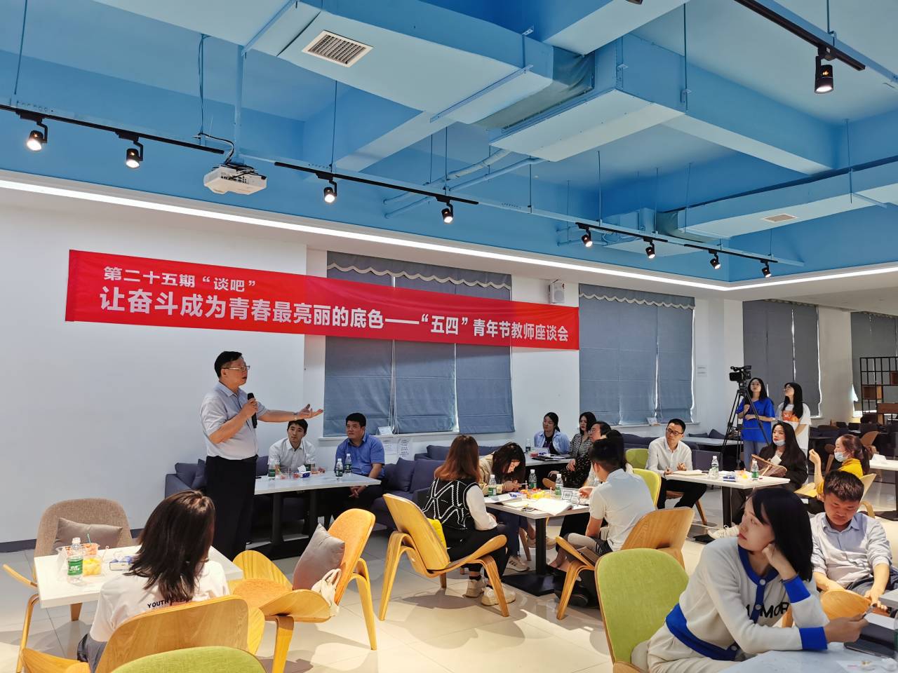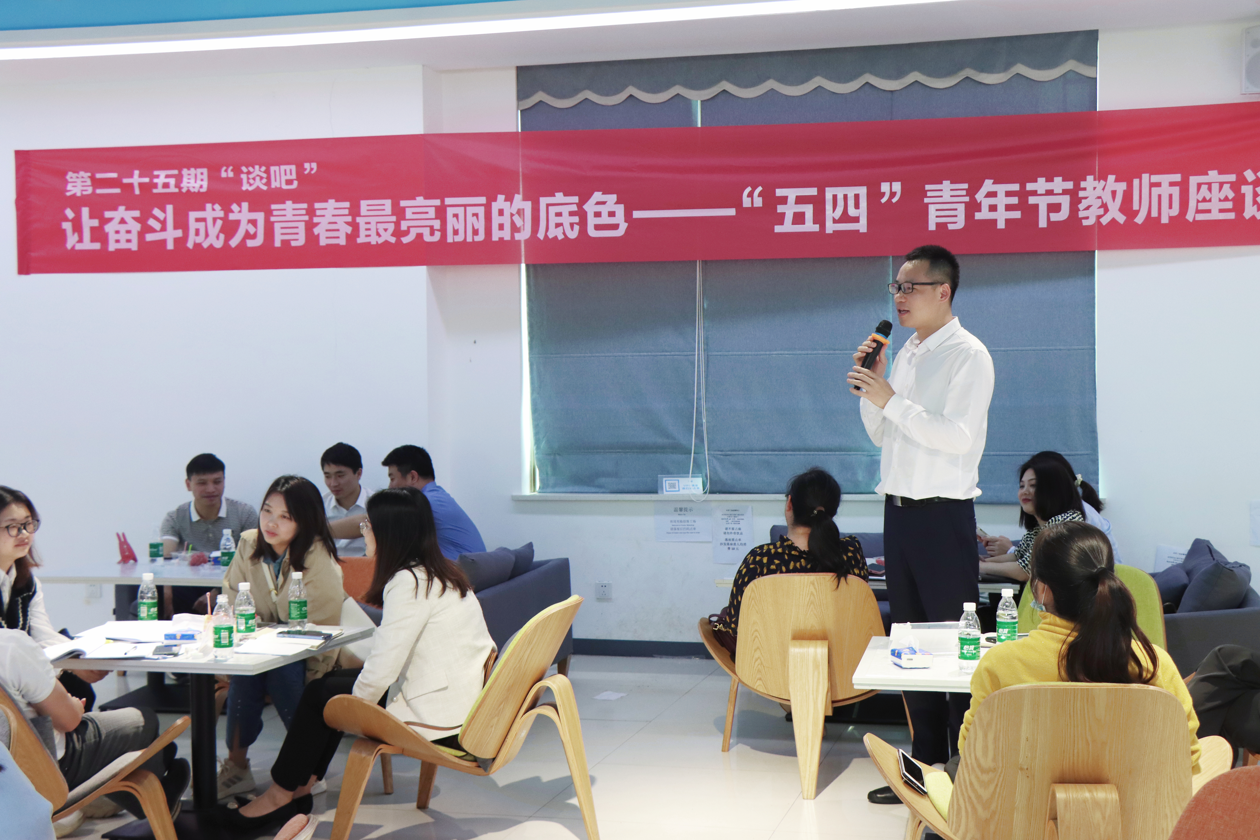 5月4日下午,世界杯官网第二十五期谈吧召开了以“让奋斗成为青春最亮丽的底色”为主题的“五四”青年节教师座谈会,学生工作部部长唐华山为主讲人。