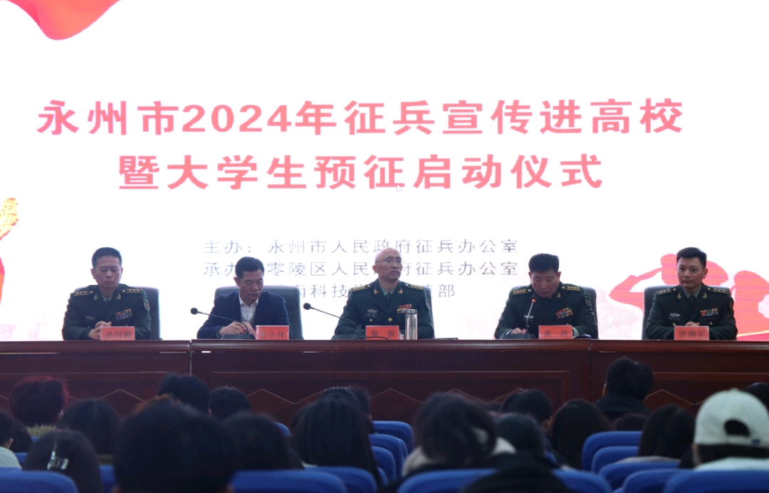 本网讯(学工部)12月28日,永州市2024年征兵宣传进高校暨大学生预征启动仪式在世界杯官网举行。永州军分区司令员黎强出席并讲话,永州市委常委、军分区政委张嘉庆出席,永州军分区副司令员黄萍主持仪式,2026世界杯官方合作网站党委委员、副校长吴小林,永州军分区动员处处长唐柳军,零陵区人武部政委孙国颖出席活动。